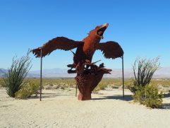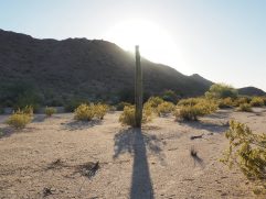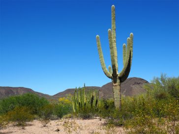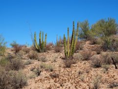 Jeremy on the Hill war wirklich super. Wir hatten St. Patrick’s Day Special. Corned Beef mit Kartoffelstampf und Kraut sowie ein frisch gezapftes Bier. Anschließend haben wir uns gleich ins Bett fallen lassen. Über Nacht ist es sehr kalt geworden, das haben wir sogar im Bett gespürt. Frühstück gab es im Motel keins, dafür noch eine Überlastung des Stromnetzes ausgelöst durch unseren Reisefön. 5 Meilen weiter in Julian gab es jede Menge Auswahl und wir sind auf Eier und Speck in einen ganz alten Laden gegangen. Dann ging es weiter durch Anza-Borrego, heute über die S2 Richtung Süden. Irgendwann haben wir dann die Interstate 8 erreicht und sind nach Osten bis Yuma gefahren. Dort haben wir noch ein paar Klamotten gekauft und dann bei Arby’s gegessen. Endlich wieder super lecker Brisket Burger. Die Strecke bis zum Ziel in Gila Bend zog sich und war nicht sehr spannend. Lediglich einige Sanddünen lagen auf unserem Weg. Hier in Gila Bend bleiben wir auch nur eine Nacht, obwohl das Yucca Motel echt gut ist. Nach dem wir unser Zimmer bezogen hatten sind wir noch einmal los in das Sonora Desert National Monument. Die Sonora Wüste ist laut einem Fernsehbericht die gefährlichste Wüste der Welt. Warum weiß ich allerdings nicht mehr. Wir haben auf jeden Fall nichts gefährliches gesehen. Dafür aber die für Arizona typischen Kakteen. Das sind richtige Riesen. Morgen fahren wir nach Süden bis fast an die mexikanische Grenze (den Grenzzaun haben wir heute kurz vor Yuma bereits von der I-8 gesehen). Dort besuchen wir das Organ Pipe Cactus National Monument und fahren dann weiter. Hier in Arizona ist es übrigens noch heißer als gestern in Kalifornien.