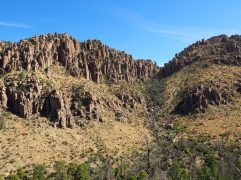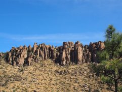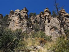 Steffi hat letzte Nacht nicht so gut geschlafen. In gut 500 Meter Entfernung zum Motel verläuft eine Eisenbahnlinie und die Züge fahren die ganze Nacht durch. Dabei hupen sie, wenn sie die Bahnübergänge passieren. Dem entsprechend war es kein Problem um sechs Uhr aufzustehen. Nach einem kleinen Frühstück ging es bei noch recht frischen Temperaturen zum Chiricahua National Monument. Stellt sich die Frage: Wie spricht man das eigentlich aus? Ist scheinbar auch so ein Problem wie mit diesem isländischen Vulkan. Zum Glück hat uns heute niemand gefragt wo wir hin wollen oder her kommen. Nach einem kurzen Stück I-10 East und einem schier endlosem Stück über den Highway 186 waren wird dann endlich dort. Zuvor gab es schon eine Ankündigung und an der Entrance Station dann die endgütige Gewissheit: Der Bonita Canyon Drive ist ab dem Visitor Center komplett geschlossen. Lediglich die Trails können genutzt werden. Okay, das wollten wir auch, wären aber trotzdem gerne bis zum Ende gefahren. So wird die Liste der unerledigten Dinge in Arizona wieder um einen Eintrag länger (Ajo Mountain Drive, Bonita Canyon Drive). Wir sind dann vom Visitor Center aus den Lower Rhyolite und den Sarah Deming Trail gelaufen. In Summe 5 Kilometer und immer bergauf. Oben angekommen hatten wir einen tollen Ausblick und dann ging es die selbe Strecke auch wieder zurück. Auf unserem Rückweg zum Motel haben wir noch kurz Halt in Tombstone gemacht. Diese Stadt hat einen historischen Teil, wo nicht nur die Häuser wie aus dem 19. Jahrhundert aussehen. Scheint sehr beliebt zu sein, denn es war sehr voll. Wir haben uns nur einen kurzen Überblick verschafft und sind dann weiter. Heute kamen wir nur einmal in eine Kontrolle der Border Patrol, konnten aber gleich weiterfahren.