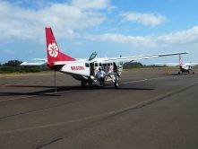 Heute hieß es also Abschied nehmen von Maui. Einfach war es nicht, hatten wir doch eine tolle Zeit und immer wenn ein Kapitel zu Ende geht nähert sich auch das unvermeidliche Ende wieder ein Stück. Letzte Nacht hat es noch einmal richtig gestürmt und ich dachte schon, es würde den ganzen Tag wieder so gehen. Aber zum Glück war es heute früh sehr angenehm. Wir haben noch den Rest gepackt, gefrühstückt und dann das Aina Nalu Lahaina Resort verlassen. Die Fahrt zum Flughafen verlief ohne Probleme und so waren wir zeitig am Commuter Terminal. Schnell Check-In und dann noch einen Kaffee. Deutlich vor der Zeit wurde unser Flug aufgerufen, wir bekamen Reihe Eins und schon ging es über das Rollfeld zu einer Cessna 208EX Grand Caravan. Wem das nix sagt, eine kleine Maschine mit einem Propellermotor und neun Sitzplätzen. Als alle drin waren gab es noch eine kurze Sicherheitseinweisung aus dem Cockpit und schon waren wir 20 Minuten früher auf der Startbahn. Knapp 40 Minuten dauerte der Flug bis Kona und wir konnten eine atemberaubende Aussicht genießen. Am Flughafen in Kona auf Big Island haben wir unseren dritten Mietwagen bei Alamo übernommen. Heute mal am Schalter und prompt hat es länger gedauert. Inzwischen sind wir bei unserer gewohnten Klasse Midsize SUV angekommen und wir haben uns einen silber-farbenen Jeep Cherokee ausgesucht. Der fährt sich echt gut. Wir waren direkt im Kaloko-Honokohau State Park und haben nach grünen Meeresschildkröten Ausschau gehalten. Glück gehabt, haben ganz viele gesehen. Dann ging es über den Highway 11 nach Süden bis nach Wai’ohinu, wo wir unser erstes Quartier bezogen haben. Leider ist das Wetter hier heute auch nicht so doll und der Wind hat wieder die ein oder andere Sache verhindert. Immerhin waren wir noch am südlichsten Punkt der USA, was nicht Key West ist.