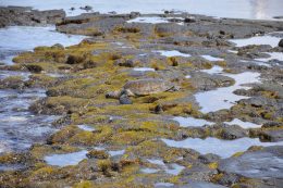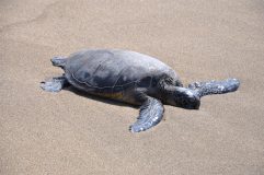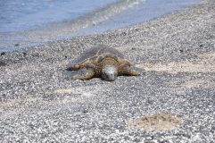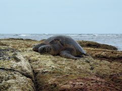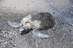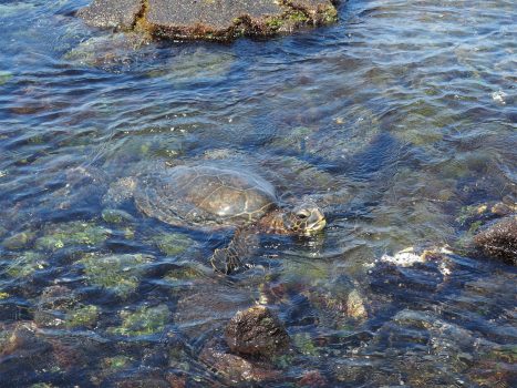 Die Nacht in unserem neuen Quartier war wieder erwartend ganz gut und wir haben bis morgens durchgeschlafen. Um 8 Uhr sind wir zum Frühstück gegangen. Jetzt haben wir Halbzeit und zum ersten Mal gab es Toast mit Marmelade von Pappgeschirr. Anschließend haben wir uns schnell auf den Weg gemacht, denn wir wollten heute noch so einiges machen. Erster Stopp war am Kaloko-Honokohau. Dort sind wir den gesamten Trail gelaufen und haben am Ende Massen an Green Sea Turtles beobachten können. Einige lagen sogar am Strand und haben sich dort ausgeruht – fantastisch. So viele auf einmal haben wir noch nie gesehen. Dann ging es weiter Richtung Norden. Irgendwann haben wir die Abfahrt zu einem State Park genommen um dort zu schwimmen. Das Wasser war herrlich, leider fehlten heute die Wellen. Dann ging es noch ein Stück weiter, bis wir ins Landesinnere (Inselinnere) abgebogen sind. Dort ging es durch den grünen Teil der Insel bis nach Waimea. In Waimea haben wir dann mexikanisch gegessen und dann die Rückfahrt angetreten. Ganz schön verbrannt haben wir uns heute. Mal wieder nicht aufgepasst. Heute haben wir den Sonnenuntergang verpasst, ist aber nicht so schlimm. Am Horizont sind wieder einmal Wolken. Gleich gehen wir noch ein paar Kleinigkeiten besorgen und packen dann die Koffer für den zweiten Teil unserer Reise. Der beginnt morgen Abend in San Diego – wir freuen uns schon auf die Abwechslung.