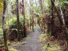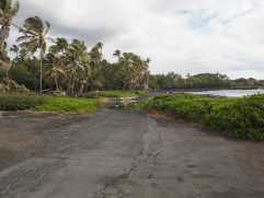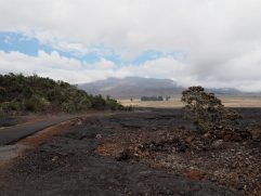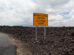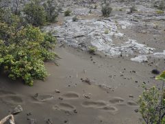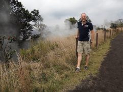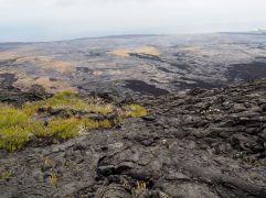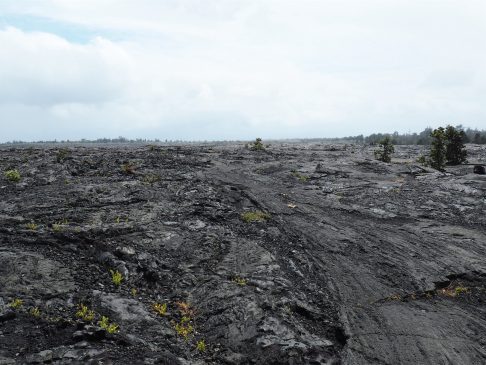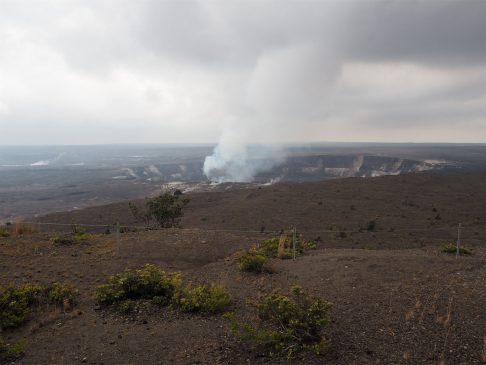 Auch wenn das Bett fast etwas zu kurz für mich ist, habe ich dennoch ganz gut geschlafen. Um 8 Uhr hat das Frühstück schon auf uns gewartet. Es gab Kona Kaffee, Omelett, Hashbrowns, Pancakes und frische Papaya. Satt und zufrieden haben wir uns dann auf den Weg zum Tanz auf dem Vulkan gemacht. Noch vor dem National Park haben wir an einigen Stellen gestoppt, sind ein Stück über den Ka’u Desert Trail gelaufen und die Mauna Loa Road gefahren. Auf der war zum Glück nichts los, denn die war über 8 Meilen nur einspurig. Im Park angekommen haben wir kurz das Visitor Center besucht, wir wollten ja wissen wo wir die Lavaströme sehen können. Dann die Enttäuschung: Man kann im National Park keine frischen Lavaströme sehen. Nur außerhalb und auch nur mit dem Helicopter. Aber am Abend kann man das Glühen in der Caldera sehen. Okay, warten wir mal ab. Wir sind dann die Chain of Craters Road bis zum Ende am Meer gefahren, haben immer wieder Stopps eingelegt und viele Fotos gemacht. An einigen Stellen sind wir auch immer mal ein Stück gelaufen. Die Lavafelder sind wirklich faszinierend. Der Regen heute leider nicht so sehr. Immer wieder wurden wir von kurzen Schauern überrascht. Dann ging es noch bis in den äußersten Süd-Osten der Insel, wo wir ein interessantes Gespräch mit einem Einheimischen geführt haben. Er hat uns Fotos gezeigt und seine Geschichte erzählt, wie er vor einigen Jahren sein Haus an die Lava verloren hat. Sehr bewegend und auch beeindruckend. Nach einem schnellen Abendessen sind wir dann doch noch einmal in den National Park gefahren und haben uns das Leuchten oder Glühen der Caldera angesehen. Anschließend ging es zurück, wo wir jetzt noch etwas Nachrichten und Sport im Internet nachlesen und dann schlafen werden. Morgen geht es über einen Umweg zurück nach Kona.