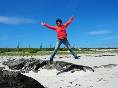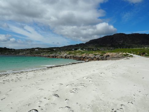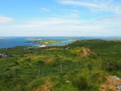 Die letzte Nacht war recht merkwürdig. Der Schlaf wurde irgendwann sehr unsanft unterbrochen, als ein Helikopter unmittelbar über unser Dach geflogen ist. War wohl die Küstenwache auf dem Weg zum Hospital. Dafür konnten wir den entgangenen Schlaf nachholen, denn im Clochard B&B gibt es erst ab 8:30 Uhr Frühstück. Auch hier ist es wieder richtig gut und wir können aus neun Kombinationen wählen. Da wir zwei volle Tage Zeit haben, haben wir uns Connemara aufgeteilt. Heute die Küstenregion und morgen der National Park. Zunächst ging es ganz gemütlich entlang der Küste bis Carna. Von dort haben wir den Wild Atlantic Way (der uns schon seit einigen Tagen immer wieder begegnet) verlassen und sind über die N59 bis Clifden gefahren. In Clifden startet die Sky Road mit atemberaubenden Ausblicken auf die Küste und die vielen kleinen Inseln. Schaut man so auf das Wasser, dann wirkt es irgendwie karibisch. Schaut man hingegen auf das Land, dann könnte es auch nördliches Norwegen sein. Die Aussichten begeistern immer wieder von Neuem. Dann ging es langsam wieder zurück und der nächste Stopp war in Ballyconneely. Dort haben wir gegessen (Club Sandwich und Open Crab Sandwich), was richtig super geschmeckt hat. Dann ging es wieder an den Strand. Leider war es den ganzen Tag schon wieder so windig, aber auch durchweg sonnig. In der Nähe von Roundstone haben wir noch einen langen Strandspaziergang gemacht, bevor es dann endgültig zurück nach Galway ging. Jetzt schauen wir noch das EM Spiel Deutschland gegen Polen zu Ende. Die erste Halbzeit haben wir bei Guinness in einer Bar gesehen.