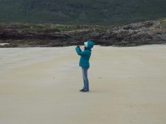Heute hatte ich Pancakes zum Frühstück, die waren auch richtig gut. Mit viel Obst am Tellerrand und ordentlich Sirup. Das eigentliche Highlight des Tages aber haben die asiatischen Gäste heute morgen geboten. Die waren auf der Suche nach einem Ausflug für den heutigen Tag, da sie für Freitag und Samstag einen gebucht haben aber eben nicht für heute. Diese Aussage sorgte für etwas Verwirrung, da die Dame des Hauses sich sicher war heute sei schon Freitag. Jedenfalls hat sie ihren Mann gefragt, ob heute Donnerstag oder Freitag sei. Darauf hat er nur ganz schlicht geantwortet es sei egal, es regnet sowieso jeden Tag (it’s raining every day)! Das trug wiederum sehr zur Erheiterung der übrigen Gäste bei. Nun denn, wir sind jedenfalls auch heute wieder nach Connemara gefahren. Zunächst ging es zum Kiliary Fjord. Viel zu sehen gab es allerdings nicht und auch das Wetter war sehr gruselig. Also sind wir relativ schnell weiter und waren dann wieder an der Küste an einigen genialen Strandabschnitten. Trotz des starken Windes hatten wir viel Spaß und für 30 Minuten waren wir auch Hundebesitzer. Der ist gleich zu uns gekommen und hat uns am Strand begleitet. Sind wir stehen geblieben, hat er auf uns gewartet. Nach unserer Abfahrt ist er dann wieder abgezogen. Am frühen Nachmittag sind wir am Connemara National Park angekommen. Dort gab es erst einmal Mittagessen. Heute Organic Lamb Burger und Fish & Chips. War auch wieder gut. Im National Park konnte man wieder zwischen drei unterschiedlichen Trails wählen. Wir haben erneut den blauen, mittellangen gewählt. Leider hat es nicht wirklich viel Spaß gemacht, denn der Wind hat so richtig genervt. Auf dem Rückweg haben wir als Souvenir noch eine kleine Flasche Malzessig gekauft. Heute Abend werden wir wohl nichts mehr machen, wir sind echt kaputt. Es waren schöne, aber auch anstrengende Tage.