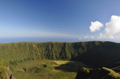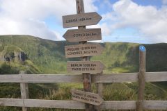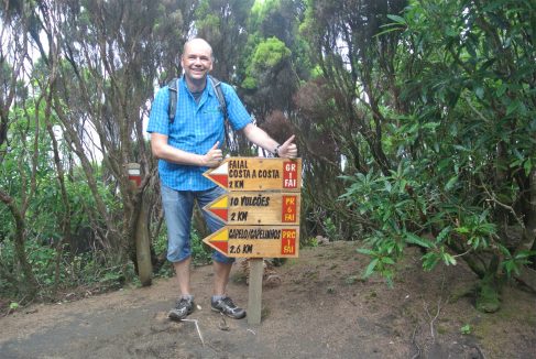 Nach des gestrigen Enttäuschung über die entgangene Wanderung um die Caldeira hatten wir die Daumen gedrückt, damit es heute klappt. Es hat tatsächlich geholfen, denn als wir heute Morgen um 10 Uhr wieder am Parkplatz waren, war es rund um den Krater vollständig wolkenlos. Also haben wir keine Zeit verschwendet und unsere Rucksäcke für die letzte Wanderung auf dieser Reise geschultert. Natürlich gab es am Anfang gleich wieder einen heftigen Anstieg und die ersten 2-3 Kilometer des Rundwegs waren sehr matschig, aber es hat riesigen Spaß gemacht. Die Ausblicke vom Kraterrand in den ca. 400 Meter tiefer gelegenen Kraterboden waren atemberaubend. Nach 2,5 Stunden und vielen tollen Bildern waren wir einmal herum. Nächster Stopp war dann Flamengos. Dort haben wir unseren seit Tagen traditionell gewordenen Mittagsstopp mit Galão und Fanta eingelegt. Wieder in einer Bar direkt an der Straße. Wir haben gemütlich draußen gesessen und das Treiben beobachtet. Jedes Dorf hat so eine Bar und es ist immer reges Kommen und Gehen. Zu guter Letzt waren wir noch im Botanischen Garten. Viele endemische Pflanzen, ca. die Hälfte der 200 verschiedenen Arten. Dazu ein großer Kräutergarten und vieles mehr. Es war noch einmal eine Stunde Entspannung. Inzwischen sind die Koffer gepackt und wir waren noch einmal in der Taberna de Pim essen. Ich hatte heute das Alcatra Stew, eine Speise der Insel Terceira. Es war fantastisch, ein würdiger Abschluss.