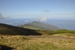 Heute Morgen sind wir zur Caldeira hinauf gefahren, aber schon bei der Anfahrt war das Problem früh zu erkennen: Alles voller Wolken und die Sicht war in Teilen ähnlich wie gestern. Also einfach nicht wirklich gut. Zudem war es noch sehr windig und mit 16°C auch recht frisch. In der Hoffnung es könnte noch besser werden, haben wir 45 Minuten am Parkplatz ausgeharrt, dann aber doch frustriert aufgegeben. Letzte Chance dann morgen. Wir sind nach Ribeirinha gefahren und sind zum alten Leuchtturm gewandert. Dieser wurde beim letzten schweren Erdbeben 1989 zerstört, so wie die Kirche und viele andere Teile der Ortschaft auch. Wir haben den Tourenvorschlag stark abgekürzt, waren aber trotzdem wieder 1,5 Stunden unterwegs und hatten dabei einige Anstiege zu bewältigen. Dazu war es dann auch noch ordentlich heiß. Von dort ging es dann einmal gegen den Uhrzeigersinn um die ganze Insel. In Salão haben wir für unseren Galão gestoppt und unter den Einheimischen direkt vorne an der Straße vor einer Bar gesessen. Am Praia da Fajã haben wir eine halbe Stunde einfach nur am Strand gestanden und die Wellen beobachtet. Anschließend ging es noch einmal zum Besucherzentrum am Vulcão dos Capelinhos (das hatte gestern geschlossen) und wir haben auch noch mal am Hafen von Varadouro gestoppt. Ist dann am Ende doch noch ein ereignisreicher Tag geworden. Essen waren wir im Restaurante Atlético und das war auch richtig gut. Nicht so eine Enttäuschung wie gestern. Morgen dann unser letzter Tag und vielleicht ist das Wetter besser. Wir fahren auf jeden Fall wieder rauf zur Caldeira.