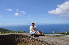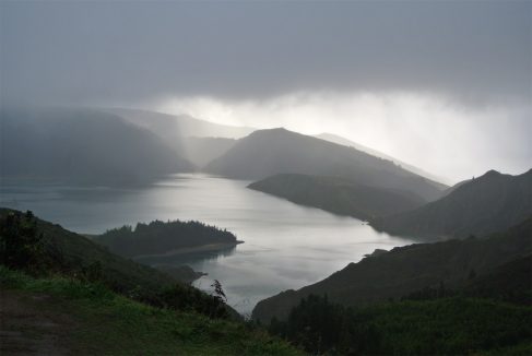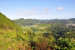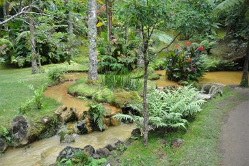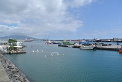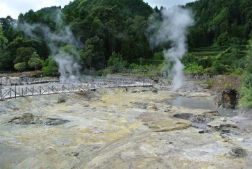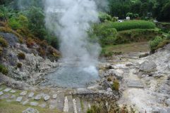Keine Angst, so heiß war es draußen nicht. Ganz im Gegenteil, die Temperatur war heute sehr angenehm. Allerdings schwül warm, denn der für heute angesagte Regen kam früher als gedacht. Los ging es mit leichtem Niesel, da waren wir gerade an den Thermalquellen von Poça da Dona Beija. Es hat uns aber nicht gestört, denn das Wasser ist in fast allen Becken 39°C warm (heiß). Das wiederum entspricht in der Tat 102 Grad Fahrenheit. Eine tolle kleine Anlage mit 5 oder 6 Becken in einem wunderschönen Garten. 4,00 € Eintritt und wir waren genau zur richtigen Zeit vor Ort, denn es war zu Beginn noch schön leer. Von Furnas ging es dann zunächst an die Küste nach Povoaçao. Wir haben eine kleine Runde gedreht und dann im Hafen unseren Galão getrunken. Zu der Zeit kamen gerade die Fischer zurück und haben den Fang des Tages direkt am Anleger verkauft. Es war wirklich lustig anzuschauen, was die Käufer (ausschließlich Männer) an Land mit ihren großen Fischen so angestellt haben. Da wurde der Fisch einfach mal auf eine Mauer gelegt, oder ein Anderer legte ihn auf die Fußbank seines Motorrollers und der Dritte in einen Blumenkübel – herrlich! Anschließend ging es zurück nach Furnas, wo wir uns die brodelnden Erdlöcher angesehen haben. Es hat ein wenig an Yellowstone erinnert, nur wesentlich kleiner. Zu guter Letzt haben wir noch den Parque Terra Nostra besucht. Ein großer Garten mit vielen interessanten Ecken. Wer will, der kann hier auch ins große Thermalbad oder in einen der kleineren Pools (Hottubes). Heute Abend gab es Pizza und das etwas schlechtere Wetter hielt sich leider hartnäckig.