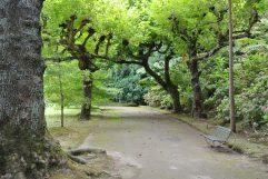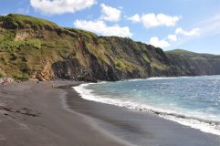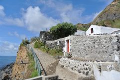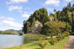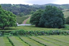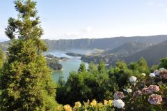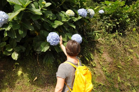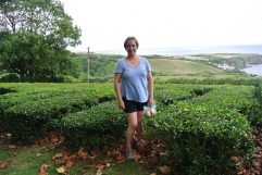 So richtig auszuschlafen schaffen wir gar nicht, wobei es dann doch meistens 8 – 9 Stunden sind. Nach dem Frühstück ging es heute als erstes zum Lagoa da Fogo. Viel gesehen haben wir aber nicht, denn das ganze Gebiet lag in dichten Wolken. Dazu hat es heute immer wieder geregnet (hat uns das Glück verlassen?). Nach ein paar Fotostopps sind wir weiter zur Caldeira Velha. Noch ein Thermalbad und dieses Mal mitten im Wald. Heute nur 2,00 € Eintritt und wir waren wieder fast die Ersten. Das Bad hat nur zwei Pools. Einen großen mit Wasserfall und kühlen 28°C und einen kleineren mit angenehmen 35°C. Unter dem Wasserfall stehen war schon ziemlich cool und erfrischend. Das Gelände ist recht weitläufig und da es die ganze Zeit geregnet hat ist alles nass geworden. Wegschließen konnten wir unsere Sachen heute nicht, also mussten wir sie die ganze Zeit mit durch den Regen tragen. Aber egal, hauptsache es hat Spaß gemacht…und das hat es! Weiter ging es danach an die Nordküste, dort zunächst bis Ribeira Grande. Dort stand der schon obligatorische Galão an. Gegen Mittag hieß es dann Tea Time. Hier auf São Miguel gibt es tatsächlich Europas einzige Teeplantage. Eigentlich sind es sogar Zwei und wir haben beide besucht. Zunächst die kleine Formoso. Wir kamen gerade rechtzeitig zur Führung mit anschließender Verkostung. Der Tee war so gut, dass wir gleich zwei Pakete Schwarztee gekauft haben. Die zweite Plantage ist deutlich touristischer und wir waren schnell durch. Super interessant die Teepflanzen mal zu sehen und auch anzufassen. Hat ja etwas von einer Hecke in Nachbars Garten, hätten wir so nicht erwartet. Am Ende sind wir immer weiter entlang der Nordküste in Richtung Westen gefahren. Wir haben viele Stopps gemacht und wollten eigentlich einmal ganz herum, aber es wurde zu anstrengend. Also haben wir gedreht und sind auf direktem Weg zurück nach Ponta Delgada. Gerade waren wir im Restaurant Nacional essen. Guter Tipp aus dem Reiseführer und hat schon mehr als 50 Jahre Tradition. Es war wirklich gut. Morgen Vormittag ganz entspannt packen und zum Flughafen. Am Nachmittag fliegen wir auf die Insel Pico.