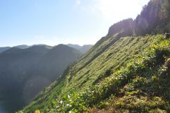 Damit sind natürlich wir gemeint. Gestern haben wir (also ich) den Safe verriegelt und brauchten Hilfe zum Öffnen und heute Morgen haben wir (also wieder ich) im Bad an einer roten Kordel gezogen und so den Notruf ausgelöst. Ständig muss hier jemand kommen und bei uns klopfen. Okay, die Kordel hätte auch für die Lüftung im Bad sein können…hätte. However, nach einem sehr üppigen Frühstück sind wir in Richtung Sete Cidades aufgebrochen. Dort liegen die Kraterseen und wir hatten uns eine gute Wandertour als Einstimmung heraus gesucht. Den Wagen haben wir am Miradouro da Vista do Rei geparkt. Dort konnten wir zum Glück auch günstig Wasser und Kekse kaufen. Der Rother Wanderführer hat für die 8,9 Kilometer gute 2.45 h veranschlagt. Zunächst ging es ganz locker über 300 Höhenmeter hinunter zu den Seen. Von dort hätten wir eigentlich 30 Minuten entlang der Straße wieder hinauf laufen sollen…Straße, ach Quatsch! Wir wollten lieber am Seeufer entlang. Leider hat die installierte Karte der Azoren auf meinem Garmin nicht funktioniert, sonst hätten wir es eher gewusst. So traf uns die Erkenntnis, dass der zunächst breite und gut ausgebaute Wanderweg irgendwann zu Ende war und es über Stock und Stein durch den Wald ging. Einen Aufstieg zum Ausgangspunkt gab es natürlich nicht und so mussten wir einmal um den ganzen See. Am Ende ging es über den ursprünglichen Weg wieder zurück zum Auto. Die letzte der vier Stunden hatte es dann mit über 15% Steigung so richtig in sich. Der Weg hat richtig in den Beinen gebrannt, mal sehen wie es uns morgen geht. Nachdem wir uns etwas erholt hatten sind wir über Sete Cidades nach Mosteiros gefahren. Dort haben wir Tuna Steak gegessen und uns die Naturpools am Meer angesehen. Der letzte Stopp war an der Therma do Ferraria. Heute Abend sind wir noch zum Hotel Maritim Atlantico gelaufen. Dort ist der Picos de Aventura Store, wo wir uns morgen früh für unserere erste Whale Watching Tour treffen. Gute 15 Minuten müssen wir laufen, um dorthin zu kommen. Wird also etwas stressig, denn Frühstück gibt es erst ab 7:30 Uhr und eine Stunde später geht es schon los. Am Ende des Tages waren wir noch in der Sports Bar unseres Hotels und haben uns ein großes Bier gegönnt. Gleich neben dem Hotel ist eine richtig gute Eisdiele, wo wir auch schon zweimal waren. Es war ein anstrengender, aber richtig guter Tag. Wenn es so weiter geht, dann wird das hier der Wahnsinn.