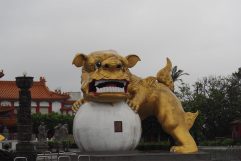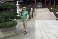 Die letzte Nacht war sehr erholsam, allerdings hatte sich das Wetter leider nicht verbessert. So sind wir nach dem Frühstück erneut in voller Regenmontur raus gegangen um uns abschließend noch einen großen Tempel und eine Statue anzuschauen. Beim Aufstieg in den Zhongzheng Park mussten wieder jede Menge Stufen überwunden werden und mit Regenjacke kommt man noch viel schneller ins schwitzen. Der Regen wurde mal weniger und dann nahm er aber auch schlagartig wieder zu. Es war aber auszuhalten und so haben wir alles gesehen, was wir wollten. Wir haben aber auch wirklich gute Outdoor Klamotten, die relativ schnell wieder trocknen. Am späten Vormittag haben wir eine ganze Zeit auf dem Schiff in der Bibliothek gesessen und gelesen. Da wir gegen Mittag Keelung wieder verlassen haben, war es im Restaurant natürlich wieder einmal richtig voll. Wir sind dann einfach eine Stunde später gegangen und haben zu der Zeit sofort einen Platz gefunden. Heute gab es türkisch und koreanisch zum Lunch. Wir haben uns hauptsächlich bei letzterem bedient und fanden es Beide wieder einmal sehr gut. Jetzt fahren wir seit einigen Stunden auf einem nord-östlichen Kurs in Richtung Okinawa. Dies wird morgen unser erster Stopp in Japan. Es ist zwar „nur“ eine kleine Insel mitten im ostchinesischen Meer, wird uns aber hoffentlich einen ersten Einblick in die Kultur der Menschen gewähren. Seit wir Keelung verlassen haben bläst ein stetiger Wind und wir haben leichten Wellengang. Das Schiff schaukelt zwar etwas, aber nichts was uns in irgendeiner Form Sorgen bereiten würde. Gleich geht es zum Abendessen und wir sind schon sehr gespannt, denn heute Abend lautet das Thema: Vietnam. Ist irgendwie unser Lieblingsessen.