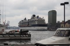 Die erste Nacht in unserer Kabine war sehr gut. Wir waren gegen 8 Uhr beim Frühstück und erstaunt, wie voll es schon war. Platz haben wir trotzdem noch gefunden. Dann ging es ein letztes Mal in die Stadt, die uns die letzten Tage wirklich sehr beeindruckt hat. Wir sind mit einem Minibus zur nächsten Metrostation gefahren und von dort noch einmal hinüber nach Hong Kong Island. Wir haben uns noch ein paar Sachen angesehen, waren noch einmal in einer der leckeren Bäckereien und sind noch ein letztes Mal mit der Tram gefahren. Zurück ging es wie gestern mit der Fähre zum KaiTak Ferry Terminal. Bevor wir dann endgültig wieder an Bord gegangen sind, haben wir uns noch den KaiTak Runway Park angesehen. Es gibt noch einige Überbleibsel vom alten Airport, der im Sommer 1998 geschlossen worden ist. Um 14 Uhr mussten wir dann noch einmal bei den Behörden hier auf dem Schiff vorstellig werden, um die Ausreiseformalitäten zu erledigen. Die Schlange war zwar sehr lang und verlief über das halbe Schiff, dennoch ging es verhältnismäßig schnell. Unsere Pässe wurden jetzt eingesammelt. Mal sehen, ob es im Laufe der Reise doch noch Stempel gibt. Das Auslaufen im Anschluss an die Seenotrettungsübung war relativ unspektakulär und der Himmel voller tiefhängender Wolken. Zum Essen waren wir im Buffetrestaurant. Heute war das Motto deutsch und chinesisch. Wir haben uns auf Letzteres konzentriert und es war wie erwartet richtig gut. Jetzt haben wir HK also verlassen – ich habe fast immer nur HK die letzten Tage geschrieben, aber jedem sollte klar sein, dass Hong Kong damit gemeint ist – und fahren Richtung Taiwan. Morgen ist Seetag und ich werde gerne noch einmal unsere ganzen Eindrücke der ersten Woche zusammenfassen.