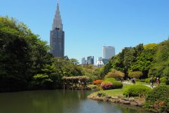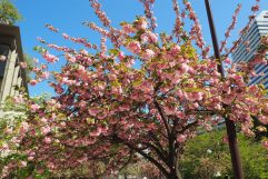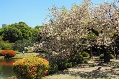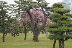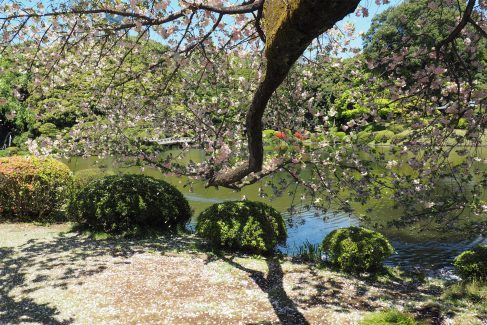 Als wir heute aufgestanden sind, da hatten wir bereits wieder bestes Wetter und das sollte auch den ganzen Tag so bleiben. Also nur schnell frühstücken und dann nichts wie los. Zunächst ging es Richtung Westen, vorbei am Akasaka Garden zum Shinjuku Gyoen National Garden. Der Eintritt war mit ¥200 verschwindend gering und heute bekamen wir zum Abschied noch einmal die volle Blütenpracht zu sehen. Es war herrlich. Vom Garten aus haben wir die Metro zum Tokyo Tower genommen. Wir mussten noch ein kurzes Stück laufen, wobei wir die Zeit auch gleich wieder für einen Reissnack genutzt haben. Der Tokyo Tower ist ein Nachbau des Eiffelturms in Paris. Allerdings ist er ein paar Meter höher, viele Tonnen leichter und in rot und weiß lackiert. Hochgefahren sind wir aber nicht. Von dort ging es dann weiter nach Shimbashi. Dort haben wir erst einmal etwas gegessen. Teishoku ist das traditionelle japanische Komplettmenü. Wir hatten Sashimi vom Lachs und Thunfisch mit Avocado auf Reis, Roastbeef, Misosuppe sowie Salat und kleine Beilagen. Es war super gut. Weiter dann zum Central Market, wo wir uns bei einem der kleineren Restaurants noch zwei Portionen Sushi mitgenommen haben. Wir sind noch ein kleines Stück am Sumida-Gawa entlang gelaufen, bevor wir uns auf den Rückweg gemacht haben. Vorbei an der Tokyo Station und dem Palast sind wir nach unendlichen vielen Kilometern wieder am Hotel angekommen. Kein Ahnung, wie viele Schritte es heute gewesen sind. Inzwischen haben wir uns von solchen Dingen freigemacht. Aber es waren bestimmt richtig viele und Tokyo ist eine super geniale Stadt. Vielleicht das Beste, was ich bisher gesehen habe.