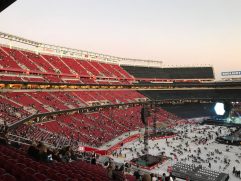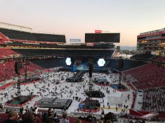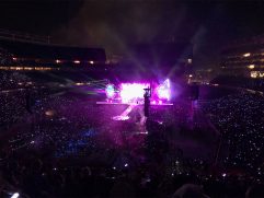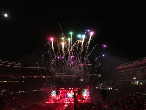 Recht frisch war es heute Morgen mal wieder, aber immerhin konnte die Sonne ungehindert auf uns hinab scheinen. Frühstück im Best Western war gut, mussten wir aber extra bezahlen. Somit war das Ganze eine teure Angelegenheit. Ist ja Urlaub. Gegen 9:30 Uhr sind wir dann wieder auf die US 101 South und hatten nach einer guten Stunde die Golden Gate Bridge erreicht – unser Brückentag eben. Kurz vor der Brücke sind wir für ein paar Fotos von der Nordseite und um einen Fahrerwechsel zu machen abgefahren. Diese Gelegenheit habe ich mir nun wirklich nicht nehmen lassen und bin dann selber über die Brücke gefahren. Auf der Südseite wird für die zu zahlende Gebühr nur kurz das Autokennzeichen fotografiert, anhalten muss (und darf) hier keiner mehr. Einige stören sich aber nicht daran und bleiben tatsächlich mit dem Auto für ein paar Fotos stehen. Entsprechende Ansagen zur Weiterfahrt gibt es dann direkt aus dem Kontrollzentrum. Unser Kennzeichen hatte ich bereits vor einigen Tagen im Internet registriert, dann brauchen wir keine zusätzliche Gebühr an die Mietwagenfirma abzudrücken. Auf der anderen Seite angekommen haben wir am Presidio geparkt und sind dann los die Brücke aus südlicher Richtung kommend zu erkunden. Natürlich wurde sie aus jeder erdenklichen Perspektive fotografiert. Dabei haben wir sogar einen Wal gesehen, der aus der Bucht in den Ozean geschwommen ist. Gelaufen sind wir über die Brücke bis fast zur Mitte und anschließend wieder zurück. Dann ging es auch schon weiter, noch ein Stopp am nächsten Strand (noch mehr Brückenfotos) und dann nach Fremont, wo wir heute im Extended Stay America übernachten. Dort konnten wir noch mal zwei Stunden entspannen, bevor es dann zu unserem Abendevent in Santa Clara ging. Coldplay live im Levi’s Stadium mit 60.000 Fans. Es war grandios, wir hatten die Adventure of a Lifetime Tour ja bereits 2016 in Hamburg gesehen und fanden es schon genial, aber hier das war noch mal eine ganz andere Hausnummer. Das Publikum ging viel mehr mit und für’s Mitsingen ist es natürlich ein Vorteil, wenn Englisch die Muttersprache der meisten Konzertbesucher ist. Danke, es war die perfekte Half-Time-Show (in Erinnerung an den Super Bowl 50 und den Halbzeit-Auftritt von Coldplay eben in diesem Stadion passend zur Halbzeit unserer Tour – perfektes Timing).
