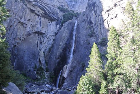 Auch heute haben wir uns wieder um 8 Uhr am Auto getroffen und das Super 8 in Berkeley nach zwei wirklich guten Nächten wieder verlassen. Über die San Pablo Avenue ging es nach Süden und nach knapp 10 Minuten saßen wir dann endlich im lang ersehnten iHop zum Frühstück. Heute war das Wetter wie in den ganzen letzten Tagen überragend. Richtig bewölkt ist es schon lange nicht mehr und es wird auch immer wärmer (sehr zur Freude aller). Nach dem ausgiebigen Frühstück ging es Richtung Osten zum Yosemite National Park. Unterwegs haben wir an einem Farmer’s Market gehalten, viele Sachen probiert und die leckersten davon auch gekauft. Kurz nach 13:30 Uhr haben wir die Westgate Entrance Station passiert und sind ins Valley gefahren. Es war heute (Samstag) richtig voll, was natürlich schon auf den Parkplätzen anfing. Kurz hinter Chapel hatten wir dann aber Glück und waren zu Fuß nur noch 15 Minuten vom Visitor Center entfernt. Nachdem wir uns alle Vier ein Eis gekauft hatten, ging es ganz gemütlich zu den Lower Yosemite Falls. Wir hätten gerne mehr Zeit im Valley verbracht, aber manchmal muss man sich etwas einschränken. Trotzdem waren es tolle zwei Stunden und morgen Vormittag haben wir ja auch noch einige Stunden im Park. Außerdem mussten wir ja auch noch eine Stunde zurück zur Westgate Lodge fahren. Kurz vor dem Erreichen unserer Unterkunft bin ich mir ziemlich sicher gewesen einen Mountain Lion gesehen zu haben. Wir hatten direkt angehalten, aber es gab keine Spur mehr von ihm. Vielleicht war ja der Wunsch der Vater des Gedanken. Gerade waren wir noch richtig gut essen und einige leckere Bier trinken. Als Dankeschön für die ganze Planung der Tour wurden wir heute auch eingeladen. Nette Geste, die wir sehr zu schätzen wissen.