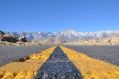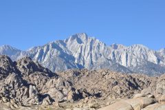 Den heutigen Tag konnten wir entspannt angehen, denn im Meadows Restaurant gab es erst ab 8 Uhr Frühstück. Genau wie das gestrige Abendessen war auch das Breakfast richtig gut. Anschließend haben wir uns wieder auf den Weg gemacht. Ich muss gar nicht erst erwähnen, dass der Himmel wieder einmal komplett wolkenlos gewesen ist. Um 9 Uhr haben wir den Park erreicht und sind kurze Zeit später links auf die CA-120 East abgebogen. Dann ging es auf den langen Weg hinauf zum Tioga Pass. Wir hatten viele tolle Fotostopps, den besten natürlich am Olmsted Point. Tiere haben wir keine gesehen, sind wahrscheinlich schon alle im Winterschlaf. Irgendwann waren wir dann ober auf der Passhöhe, wo auch gleich die Entrance Station ist. Soll heißen, für uns ging es dann raus aus dem Park hinunter zum Mono Lake am Ende der CA-120. Der Mono Lake ist ein großer See, der in den letzten Jahren viel Wasser verloren hat, wodurch bizarre Gesteinsformationen zum Vorschein gekommen sind. Weiter ging es nach Bodie, einer alten Goldgräberstadt. Heute ist es eine der bekanntesten Ghosttowns und entsprechend viel los war auch dort. Schlimmer war jedoch der plötzlich aufkommende eiskalte Wind. Wir haben dennoch lange genug ausgehalten, um fast alles zu sehen. Dann ging es auf die letzte Etappe des Tages zu unserem Zielort Lone Pine. Der Wind wurde inzwischen immer stärker und hinzu kam dann noch der feine Sand. Irgendwann war es dann so schlimm, dass man die Berge um uns herum schon kaum noch sehen konnte. In Lone Pine war dann zunächst alles okay, aber nach unserem Abendessen im Bar-B-Q Smokehouse waren Wind und Sand auch hier angekommen. Zur Zeit ist es draußen wirklich ungemütlich, was eigentlich sehr schade ist. Ich wäre gerne noch in die Alabama Hills gefahren, um dort Sterne zu beobachten. Wir bleiben jetzt aber lieber drinnen.