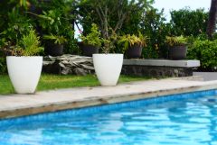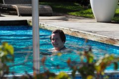 Wir waren gestern noch bei Stephanie – das klingt jetzt vielleicht etwas komisch, aber hier gibt es tatsächlich ein kleines Restaurant, das so heißt. Heute Morgen sind wir dann bei perfektem blauem Himmel aufgewacht und haben auf der Terrasse gefrühstückt. Bekloppte Idee, denn nach nur zwei Minuten war ich bereits richtig zerstochen. Also haben wir schnell wieder alles nach Innen getragen. Im Anschluss an das Frühstück ging es direkt an den Pool. Die Sonne brannte schon wieder richtig gut. Leider hielt das gute Wetter nicht lange an und es kam der nächste Regenschauer. Eigentlich muss es die Regenschauer heißen; der Erste war relativ schnell vorbei und sofort kam die Sonne wieder raus. Der zweite Schauer dauerte dafür länger. Wir kamen am Pool kurz mit zwei Schweizern ins Gespräch, so viel Regen hat es hier eigentlich nur selten. Toll für die Insel, blöd nur für uns. Es ist zwar warmer Regen, aber man will ja trotzdem nicht die ganze Zeit nass durch die Gegend laufen. Am Nachmittag hatte sich die Wetterlage aber wieder gebessert und wir sind gleich los in Richtung Norden zum nächsten Ort. Nach knapp 20 Minuten konnten wir uns gerade noch in Sicherheit bringen, bevor es richtig anfing zu regnen. Wir mussten uns mehr als eine halbe Stunde neben einem Massagestudio unterstellen, an vorwärts kommen war nicht zu denken. Die Dame im Massagestudio witterte gleich eine gute Gelegenheit und kam mit einem Flyer zu uns gelaufen; vielleicht ein anderes Mal. Ein Stückchen weiter haben wir dann etwas gegessen und zurück den Bus genommen. Das ist auch ein Abenteuer, aber nun wissen wir ja wie es geht. Nachdem der Regen dann endlich vorbei war, haben wir uns noch einmal frisches Obst an einem der Stände am Straßenrand gekauft. Dabei mussten wir (also, wir mussten nicht wirklich) durch eine riesige Überschwemmung laufen und haben uns noch zu einem leckeren kühlen Bier überreden lassen. Es ist einfach herrlich, wir überlegen nicht mehr so viel, wir machen inzwischen einfach. Das Leben kann so einfach sein.