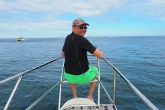 ch glaube der 9. Februar ist der Tag, an dem wir bisher am häufigsten im Urlaub gewesen sind. So natürlich auch in diesem Jahr. Der letzte (eigentlich vorletzte) Tag auf Mauritius und wir hatten noch einen Ausflug mit Bakadi-Dreams. Um 8:15 Uhr ging es also damit los, dass wir direkt vor dem Schiff abgeholt und mit einem Minibus nach Black River gebracht worden sind. Wir waren nur zu acht und die Fahrt dauerte genau eine Stunde. Dann ging es auf einen großen Katamaran. Im Segelclub, von wo wir gestartet sind, warteten sehr viele Gäste und wir hatten schon Panik, dass wir alle zusammen fahren. War aber nicht so, denn am Ende waren wir nur mit insgesamt 16 Gästen auf unserem Boot und hatten alle ausreichend Platz. Zunächst ging es raus bis hinter das Riff, wo wir zwei Delfine beobachten konnten. Eigentlich war es eher so, dass die ganzen Boote die Delfine regelrecht verfolgt haben. Unser Skipper hatte schnell ein Einsehen und hat den Katamaran zurück zum Riff gesteuert, wo wir dann einige Zeit zum Schnorcheln hatten. Leider war auch hier sehr viel vom Riff zerstört und es gab nur wenig zu sehen. Dazu kam auch noch, dass das Meer aufgewühlt gewesen ist, was die Sicht auch noch getrübt hat. Letzter Stopp war dann in einer Lagune, wo es Lunch direkt an Bord gab, dazu jede Menge Getränke und ordentlich Wasser. Zunächst beim Baden und dann nur noch von oben. Es war trotzdem ein gelungener Ausflug und wir waren gegen 16:30 Uhr wieder zurück an Bord. Inzwischen waren wir noch etwas essen, haben unsere Reisepässe mit vielen neuen Stempeln abgeholt und an der AIDA Bar noch einmal auf meinen Geburtstag angestoßen. Jetzt steht der erste Koffer vor der Kabinentür und wir vor unser letzten Nacht an Bord. Lang war es und wir sind wieder einmal sehr gut erholt, auch wenn die Zeit auf dem Schiff nicht immer ganz einfach gewesen ist.