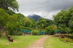 Gute letzte Nacht bis zu dem Zeitpunkt, als unser Kabinensteward geklopft hat. Tja, da hatte er sich doch glatt in der Tür geirrt. Wir konnten dann nicht wirklich weiter schlafen und haben uns fertig gemacht. Frühstück gab es im Calypso und die ersten neuen Gäste kamen da bereits schon an. Um kurz vor 9 Uhr habe ich den zweiten Koffer nach draußen ins (Abreise-)Zelt gebracht. Prompt fing es mal wieder an zu regnen. Unser Treffpunkt war die AIDA Bar und eine halbe Stunde später ging es von Bord. Der Zusteller von Sixt hat mit dem Mietwagen bereits auf uns gewartet. Schnell den Papierkram erledigt und schon ging es los. Immer schön links fahren. Als erstes ging es in den Tierpark Casela. Also eigentlich muss es Safari-Park heißen. Wir hatten Glück mit dem Wetter, haben uns erst ein paar Vögel angesehen, dann die Safari-Tour mit dem Bus gemacht und waren anschließend noch bei den Großkatzen. Ruth ist mit einer kleinen Gruppe und Führer sogar zu den Löwen ins Gehege gegangen und durfte eines der Tiere streicheln. Am Nachmittag ging es über den Süden der Insel Mauritius durch den Black River Gorges National Park nach Chamarel. Dort haben wir uns den Wasserfall Twin Sisters und die Terre de 7 couleurs angesehen. Zu guter letzt ging es in Richtung Airport Mahebourg und plötzlich kam der große Regen. Man konnte kaum noch etwas sehen und die Straßen waren binnen Minuten überschwemmt. Wie gesagt, viel sehen konnten wir nicht und schon standen wir vor der Schranke an der Flughafenzufahrt. Von dort gab es kein Zurück mehr und wir hatten auch noch nicht getankt. Egal, wir saßen 20 Minuten im Auto, bevor wir aussteigen konnten (wegen Regen). Das fehlende Benzin durften wir gleich mit der Mietwagenrückgabe bezahlen. Wir haben noch etwas gegessen, vorher haben wir uns natürlich noch umgezogen und etwas frisch gemacht und konnten dann auch relativ schnell einchecken. Jetzt sitzen wir am Gate und um 23 Uhr Ortszeit geht unser A380 der Emirates nach Dubai. Gute Nacht.