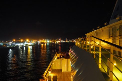 Am unserem letzten Abend in Mon Choisy sind wir gestern noch einmal zu Viert ins Refresh gegangen. Es gab super gute Vorspeisen wie Muscheln und Salat sowie leckere Hauptgänge wie Tandoori Chicken, Lobster und Coconut-Saté Huhn. Dazu leckeres, auf Mauritius gebrautes, Phoenix Bier. Heute morgen konnten wir uns dann richtig Zeit lassen. Erst in Ruhe frühstücken, duschen und anschließend noch die Koffer fertig packen. Um kurz nach halb zwölf kam dann unser bestelltes Taxi und hat uns nach Port Louis gebracht. Grauenvoller Verkehr, der an jeder Kreuzung und jedem Kreisverkehr von einem Polizisten geregelt werden musste. Wir waren trotzdem zeitig am Kreuzfahrtterminal und es war zur großen Überraschung nix los. Wir konnten direkt die Koffer abgeben, mussten noch einmal die Ausreisepapiere ausfüllen und zum Check-In gehen. Bei uns wurden keine Fotos gemacht, was etwas merkwürdig war und auch bei der Kontrolle an der Gangway natürlich gleich aufgefallen ist. So mussten wir Beide, begleitet von einer Sicherheitskraft, direkt zur Rezeption gehen, wo es dann schnell nachgeholt wurden. Anschließend ging es gleich erst einmal auf unsere Kabine. Wir sind auf Deck 4, Backbord in Stateroom 4242. Wer da nicht gleich an die Frage aller Fragen denken muss … ! Nach einem kleinen Mittagessen haben wir noch die Poolhandtücher geholt, eine Biking-Tour für morgen gebucht und die Koffer ausgepackt. Eine Kaffeemaschine für unsere Kabine konnten wir leider nicht mehr ergattern. Jetzt will ich schnell noch mal ein paar Fotos machen, bevor es heute wieder keine gibt. Nachher werden wir noch gemeinsam zum Abendessen gehen, die Seenotrettungsübung machen und die Sail Away Party auf dem Pooldeck besuchen.