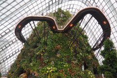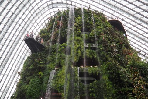 Heute stand also unsere Abreise von Langkawi bevor und um den Zeitplan einzuhalten, mussten wir etwas früher aufstehen. Um kurz nach 7 Uhr waren wir dann die Ersten beim Frühstück. Zum Check-Out haben wir uns ein Shuttle gerufen und um das Gepäck hat man sich gekümmert. Unser Fahrer war auch schon etwas vor der vereinbarten Zeit vor Ort und hat an der Rezeption bereits auf uns gewartet. Ich habe allerdings erst ganz in Ruhe die Abrechnung geprüft, denn so viel Zeit muss sein. Zum Glück stimmte aber auch alles. Die Fahrt zum Airport war sehr ruhig, soll heißen, dass unser Fahrer gar nicht geredet hat. Ganz anders der Fahrer auf der Hinfahrt, der war nämlich gar nicht zu stoppen in seinem Redefluss. Aber vielleicht sind die abreisenden Gäste ja uninteressant, mit ihnen kann man kein Geld mehr verdienen. Am Flughafen ging dann alles wieder sehr schnell – leider, denn dieser Flughafen ist ehrlich gesagt eine mittlere Katastrophe. Klein, schäbig, kein Blick nach draußen auf das Vorfeld, riesige Ladestation, die nicht funktioniert, die Toiletten so lala und die Sitze im Wartebereich angeordnet wie im Kino. Hier hält man sich wirklich nicht gerne auf. Zu allem Überfluss hatte die Maschine nach Singapur dann auch noch Verspätung. Die Hälfte der Verspätung hat der Pilot unterwegs wieder aufgeholt und wir hatten natürlich mal wieder was zu essen. Heute gleich ein ganzes Menü. Nach Immigration und Zoll sind wir mit der MRT zur Harbourfront gefahren. Wir sind jetzt die letzten beiden Nächte im Bay Hotel, direkt am Sentosa Gate. Am Nachmittag sind wir mit dem Bus zu den Gardens-by-the-Bay und haben uns noch den Cloud Forest angesehen. Ein riesiges Gebilde voll mit Pflanzen und Wasserfall, wo man außen herum laufen kann und das mitten in einem Dome. Gegessen haben wir heute japanisches Bento im Food Court am Marina Bay Sands, wo wir am Ende des Tages, bevor wir mit dem Bus zum Hotel gefahren sind, auch noch einmal durchgeschlendert sind.