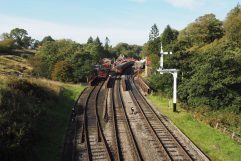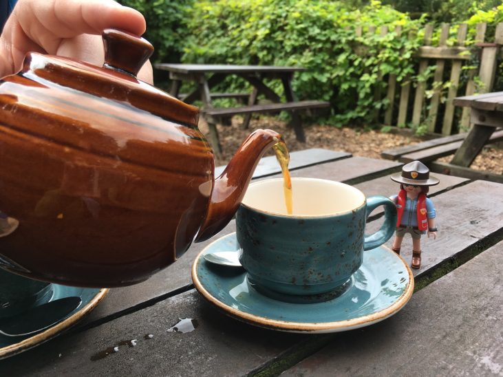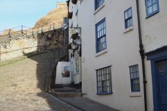 Über Nacht hat der Wind vollständig nachgelassen und das Wetter war heute morgen wunderbar. Auch beim Frühstück haben unsere beiden Gastgeber wieder alle Register gezogen, so dass man sich hier einfach wohlfühlen muss. Mit dem Auto sind wir dann das kurze Stück bis Grosmont gefahren und haben es dort am Bahnhof geparkt. Dann ging es den Wanderweg entlang der Bahnstrecke bis Goathland. Unterwegs haben wir in Beck Hole einen Tee zu uns genommen und dann noch den Abstecher zum Mallyan Spout (Wasserfall) mitgenommen. Nach einem kurzen Snack und einem weiteren Tee, haben wir in Goathland den Zug (NYMR) zurück nach Grosmont gewählt. Es war zwar nur eine kurze Strecke und nach einer knappen Viertelstunde waren wir wieder an unserem Wagen, aber es war die richtige Entscheidung, denn es hatte wieder angefangen zu regnen. Leider viel auf Grund des Regens dann auch die geplante Wanderung zu den Steilklippen buchstäblich ins Wasser. Nachdem wir in der Stadt (Whitby) noch schnell einen neuen Rucksack für Steffi gekauft haben, sind wir erst einmal zurück zu unserem B&B gefahren. Einfach mal 1 – 2 Stunden nichts tun, das hatten wir in der ersten Woche dieser Reise eigentlich noch gar nicht. An dieser Stelle muss ich vielleicht noch kurz einige Titel der letzten Tage erklären: vorgestern hatten wir The mirror behind you. Passiert ist dies in Grasmere, wo Steffi eine Jacke anprobiert hat und während sie mit dem Rücken zum Spiegel stand, den Verkäufer anblickte und selbigen mit ihrem Blick suchte. Der heutige Titel Thorsten kennt sie alle bezieht sich auf das Fahren durch die engen Straßen. Dabei ist es üblich sich mit Handzeichen zu bedanken und da ich dies andauern mache, sieht es so aus, als würde ich alle kennen. Heute Abend sind wir noch mal los und wegen des Wetters das kurze Stück mit dem Auto gefahren. Im Quayside gab es noch mal Fish & Chips und dann war der Tag auch schon wieder vorbei.