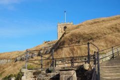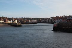 Schon sind wieder zwei Tage vorbei und es heißt aufbrechen. Wir waren heute um kurz vor 9 Uhr die Ersten beim Frühstück und so konnten wir den Tisch am Fenster wählen. Das hat die Sache draußen aber auch nicht angenehmer gemacht. Es war grau und windig. Später kam dann auch noch der lästige Regen dazu. Von Windermere ging es zunächst nach Kendal und dann einfach in Richtung Osten. Sehr schnell wurden die Straßen wieder recht schmal und zusammen mit dem nervigen Regen war es recht anstrengend. Erster Stopp war dann heute in Bedale, wo es Tee und heiße Schokolade sowie leckere Scones gab. Dann ging es weiter in Richtung North York Moors National Park. Auf Grund eines LKW Unfalls haben wir es allerdings nicht einmal bis zum Visitor Center geschafft und mussten umdrehen. Über einen kleinen Umweg konnten wir dann die Unfallstelle umfahren. War auch nix schlimmes, er hatte bergauf nur seine halbe Ladung verloren. Das Wetter wechselte ständig zwischen sonnig und total verregnet. Windig war es aber den ganzen Tag. So entschieden wir uns erst einmal nach Whitby zur nächsten Unterkunft zu fahren. Verrückt, kurz vor dem Ziel kam die Sonne heraus und der Himmel klarte auf. Es war kaum noch eine Wolke zu sehen. Hier in Whitby sind wir auch wieder zwei Tage. Das Birdhouse B&B liegt wieder etwas außerhalb der Innenstadt. Mussten wir bei Tim und Cathy für das erweiterte Frühstück der beiden letzten Tage noch £ 10.00 extra bezahlen, ist hier bei Doug und Hilary alles inbegriffen. Auch hier haben wir wieder das beste Zimmer gebucht und sind hellauf begeistert. Zur Begrüßung gab es wieder Tee und etwas Kuchen und auch sonst kümmern sich die Beiden ganz liebevoll um uns. Wir sind am Nachmittag noch runter ins Zentrum gelaufen, haben die 199 Stufen hinauf zur Abbey erklommen, sind am Wasser spazieren gewesen, waren essen (nicht ganz das Niveau der letzten Abende) und haben Pläne für morgen geschmiedet. Whale Watching ist definitiv abgesagt worden.