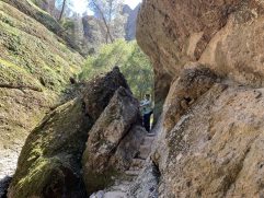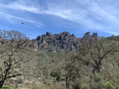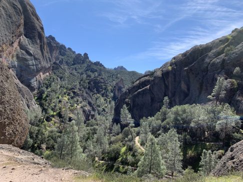 Heute brauchten wir den Wecker gar nicht, wir waren schon vorher wach. Nachts wurden wir mal wieder durch die Züge geweckt. Heute Morgen schien zwar schon die Sonne, aber es war doch empfindlich kalt. Da es auf dem Zimmer keinen Coffeemaker gab, bin ich mal eben zur Rezeption zwei Kaffee holen gegangen. Eine halbe Stunde später bin ich noch mal los und neben der zweiten Runde Kaffee, gab es dann noch Sandwiches. Ganz gut, aber doch etwas wenig. Umso erstaunlicher, dass wir damit bis zum Abendessen ausgekommen sind. Vom Motel aus ging es zunächst wieder etliche Meilen durch Farmgebiete und dann wieder durch die hügelige Landschaft. An einer Stelle entlang der CA-198 lag dann eine ganze Hügelkette vor uns, die in die Farben des Frühlings getaucht war. Die ganzen Hänge waren gelb und in der Masse sah es wie große, zusammenhängende Flächen aus. Ich glaube, unsere Fotos können nur ansatzweise unsere Eindrücke wiedergeben. Weiter ging es dann zum Pinnacles National Park. Es ist ein noch sehr junger NP und wir hatten ihn bereits 2014 besucht. Damals sind wir von der Ostseite hereingefahren. Das Besondere ist halt, dass man nur zu Fuß von Ost nach West kommt, zuvor muss man sich für eine Seite entscheiden. Wir haben die Sache heute vervollständigt und sind zur Westseite gefahren. Obwohl wir beinahe wieder an der East Entrance Station gelandet wären. Wir sind den Schildern gefolgt und zum Glück war der Tank fast leer. Auf der Suche nach einer Tankstelle ist uns der Fehler dann aufgefallen. Entrance Station und Visitor Center waren geschlossen. Also haben wir unseren Interagency Annual Pass an den Spiegel gehangen und sind weitergefahren. Prompt wurden wir kontrolliert und dann zum ersten der beiden Parkplätze geschickt. Von da aus sind wir rauf zu den Balconies Cliffs gelaufen und dann runter zu den Caves. Leider waren die verschlossen und so mussten wir den ganzen Weg wieder zurücklaufen. Aber es war ein genialer Trail und wir hatten viel Spaß. Die kalifornischen Kondore, die im Pinnacles heimisch sind, haben wir heute nur aus ganz großer Entfernung gesehen. Von National Park aus ging es auf direkte Weg nach Monterey. Hier bleiben wir jetzt zwei Nächte. Wir sind heute noch einmal nach Downtown gelaufen, haben lecker in der Alvarado Street Brewery gegessen, viel zu teure Taffy’s am Old Fishermen’s Wharf gekauft und zum Abschluss noch ein leckeres IPA bei der Fieldwork Brewing Company getrunken.