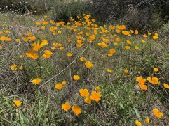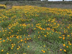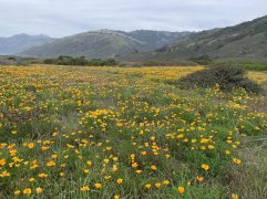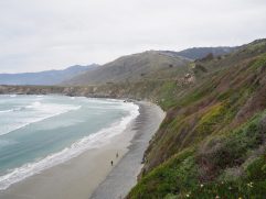 Gefühlt war es heute Morgen noch kälter im Zimmer, als gestern. Das kann auch gut sein, denn von Sonne war heute nichts zu sehen. Also dann in Ruhe frühstücken und im Anschluss alles packen. Gegen 9:30 Uhr haben wir das Days Inn verlassen und sind in Richtung CA-1 Pacific Coastal Highway aufgebrochen. Die Strecke war gerade einmal 123 Meilen lang, aber wir haben dafür mehr als sechs Stunden benötigt. Es waren deutlich weniger Baustellen auf diesem Abschnitt, als 2013 und wir hatten zum Glück eine viel kürzere Strecke zu fahren. So konnten wir viel mehr Stopps einlegen und mehr Zeit auf die wesentlichen Dinge verwenden. Es gab unzählige Fotostopps, es gab zahlreiche Drohnenflüge und damit verbunden grandiose Aufnahmen. Wir sind sogar an einigen Stellen kürzere Trails gelaufen. Auf einem haben wir per Zufall den ultimativen Super Bloom in orange entdeckt und von der Küstenstraße aus haben wir hin und wieder einen Wal an der Küste vorbeiziehen gesehen. Leider war der Himmel den ganzen Tag bedeckt und somit kommen die Bilder (Fotos) nicht ganz so gut rüber, wie mit blauem Himmel. Am späten Nachmittag sind wir in Morro Bay angekommen und haben unser Motel auch relativ schnell gefunden. Check-In ging schnell und nur wenige Minuten später hatten wir unsere Sachen schon wieder in die zweite Etage gebracht. Da wir Hunger hatten, seit dem Frühstück gab es nur ein paar Erdnüsse, sind wir gleich runter in die Embacadero Street gegangen. Um ganz sicher zu gehen, die richtige Wahl zu treffen, sind wir einmal alle Restaurants abgelaufen und haben uns dann für Beach Burger entschieden. Tolles Essen und leckeres Bier. Steffi hatte einen Pastrami Cheeseburger und ich einen Po Boy (Krabben Sandwich). Danach ging es schnell wieder zurück zum Motel, denn der Himmel über Morro Bay zog sehr schnell zu und nur eine halbe Stunde später fing es auch an zu regnen. Wenn wir der Wetter App glauben können, dann regnet es morgen den ganzen Tag. Aber Regen hat uns in den vergangenen Wochen nie aufgehalten. Wir werden den Tag ganz entspannt angehen und dann in Ruhe frühstücken. Anschließend sehen wir weiter.