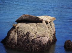 Heute haben uns doch tatsächlich die Möwen auf dem Dach geweckt. Es war gerade einmal 7 Uhr und es war verdammt kalt im Zimmer. Also erst einmal Kaffee und die Heizung an. Aber die Sonne hat so früh bereits angedeutet, dass heute ein schöner, warmer Tag werden wird (meistens jedenfalls). Frühstück ist hier im Days Inn inklusive und so haben wir uns mit Bagels und Waffeln für den Tag gestärkt. Dann ging es gegen 9:30 Uhr los. Erst runter zur Old Fishermen’s Wharf und dann entlang der Küste in Richtung Point Pinos Lighthouse. Gute vier Meilen (einfacher Weg) lagen da vor uns. Gleich zu Beginn hatten wir richtig Glück, denn wir haben zwei Kolibris und unendlich viele Eichhörnchen gesehen und natürlich auch fotografieren können. Hinzu kamen jede Menge Harbor Seals und in weiter Ferne einige Seeotter. Die Wanderung entlang der Küstenlinie war super und wir haben noch einmal richtig Sonne tanken können. Doch dann wechselte das Wetter. Vom Pazifik kamen immer dichtere, tiefhängende Wolken heran und damit verbunden leider auch ein kräftiger, eisiger Wind. Somit haben wir es leider nicht bis zum Leuchtturm geschafft, denn wir waren nur im T-Shirt losgegangen. Also umgedreht und zurück nach Downtown. Da es leider auch dort nicht besser wurde, haben wir uns in der Cannery Row schnell Hoodies aus dem Angebot gekauft und konnten entspannt am Strand weiterlaufen. Vorher, also ganz davor (vor den Hoodies), haben wir noch lecker in Archie’s American Diner eine Kleinigkeit gegessen. Wir sind dann noch ein ganzes Stück am Del Monte Beach entlanggelaufen und zurück über den Monterey Peninsula Recreation Trail. In Downtown gab es noch ein leckeres Eis. 6.00 US$ für eine Waffel und eine Kugel klingt jetzt erst einmal viel, aber die Waffeln werden frisch zubereitet, sind riesig groß, lecker und eine Kugel Eis entspricht wohl zwei Kugeln nach unseren Maßstäben. Am Abend waren wir noch einmal kurz auf ein Bier in der Fieldwork Brewery. Ein perfekter Abschluss für den heutigen Tag.