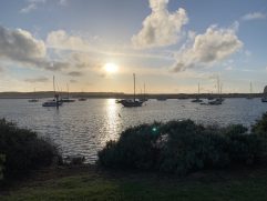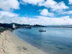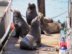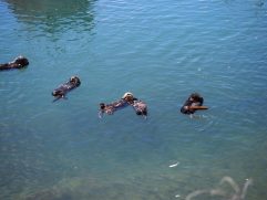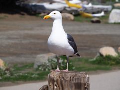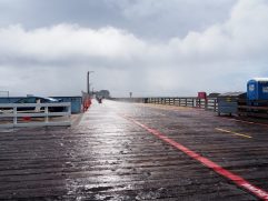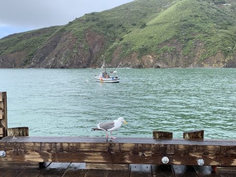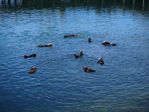 Als wir heute aufgewacht sind, konnte man als erstes den Regen hören. Oder waren es die Möwen, oder doch die Seehunde in der Bucht? Ich weiß es schon gar nicht mehr. Auf jeden Fall haben wir uns nur ganz langsam aus dem Bett gequält. Hier im Sea Air Inn Motel gibt es leider kein Frühstück, also mussten wir uns etwas in der näheren Umgebung suchen. Zwei Straßen weiter ist Carla’s Country Kitchen. Geniales Frühstück, aber am Ende hat es noch immer geregnet. Wir sind erst einmal zum Morro Rock gefahren, in der Hoffnung, dass es besser wird. Wurde es aber nicht. Also sind wir ein ganzes Stück in die Richtung gefahren, die deutlich heller aussah und sind in Port San Luis gelandet. Als es kurz aufgehört hat zu regnen, sind wir über den Port San Luis Pier gelaufen und anschließend nach Avila Beach rübergefahren. Als es jedoch wieder anfing zu regnen, haben wir uns schnell auf den Rückweg gemacht und als wir in Morro Bay angekommen sind, da schien tatsächlich stellenweise die Sonne. Wir haben den Wagen am Motel geparkt und sind zum Morro Rock gelaufen. Am Morro T Pier konnten wir die Meeresotter beobachten. Dort wurde eine kleine Schutzzone eingerichtet, so dass die Tiere in Ruhe ihren Nachwuchs großziehen können. Witzige Tiere und so gemütlich. Auf dem Weg zum Morro Rock habe ich in einer Bäckerei ein Brioche Apple probiert. Der war richtig gut und gehaltvoll. Unterwegs haben wir wieder jede Menge Squirrels gesehen. Es sind schon so viele, man könnte auch von einem kleineren Problem sprechen. Essen waren wir heute im Brickhouse BBQ. Da habe ich mich schon den ganzen Urlaub drauf gefreut. Also nicht auf das Brickhouse, sondern auf BBQ. Frisch gegrilltes Fleisch, langsam gegarte Rinderbrust und Pulled Pork. Dazu gab es wieder leckeres IPA. So ist der Tag am Ende, auch wenn wir eigentlich gar nichts vernünftiges gemacht haben, doch noch richtig gut geworden. Auf dem Heimweg haben wir uns noch mit Getränken eingedeckt. Da die Sonne noch immer so schön am Abendhimmel stand, sind wir gerade noch einmal ein Stück über die Embacadero gelaufen. Allerdings ist es abends noch recht kühl. Morro Bay hat uns sehr gut gefallen, auf jeden Fall ist es eine Reise wert.