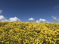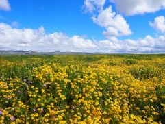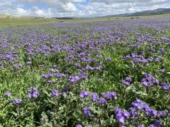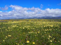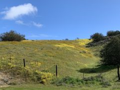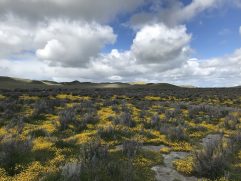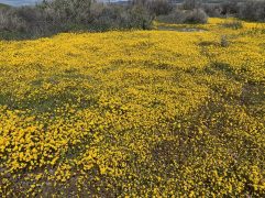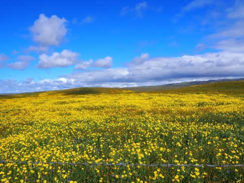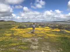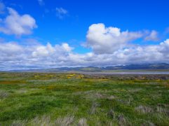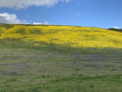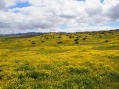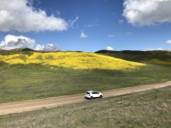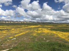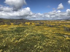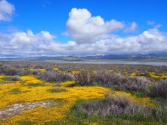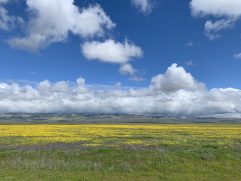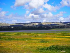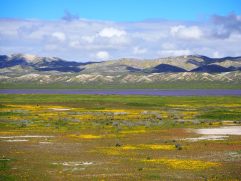 Heute mal wieder eine Stunde früher aufgestanden, denn wir hatten einen weiten Weg vor uns und waren voller Erwartung viel zu sehen. Auch heute fing der Tag erst einmal mit etwas Regen an. Wir haben schnell alles eingepackt und sind dann nach San Luis Obispo gefahren. Dort haben wir Charlie’s Place gefunden und super lecker gefrühstückt. Anschließend ging es über die US-101 nach Norden und dann auf die CA-58 weiter zum Carrizo Plain National Monument. Am Ziel angekommen sind wir nicht gleich zum Soda Lake abgebogen, sondern noch ein Stück weiter nach Osten gefahren. Bevor es ins National Monument ging, wollten wir noch mal die Drohne fliegen lassen. Warten wir mal ab, wie die Aufnahmen geworden sind. Dann haben wir umgedreht und sind über die Soda Lake Road einmal von West nach Ost durch die gesamte Carrizo Plain gefahren. Natürlich haben wir jede Menge Stopps und Abstecher gemacht. Es war der totale Wahnsinn. So viele Wildblumen auf einem Fleck haben wir noch nie gesehen und werden wir wohl auch nie mehr sehen. Die vorrangige Farbe heute war gelb. Aber wir haben auch eine riesige Fläche in lila gefunden. Man kann es gar nicht beschreiben und die Fotos geben es auch nicht im Entferntesten wieder. Wir haben extra das Auto vor gelb gefärbten Hügeln fotografiert. So kann man schon mal die Größe der Fläche besser einschätzen. Wir hätten ewig dort verweilen können, aber irgendwann mussten wir weiter. Wir sind ein kurzes Stück über die CA-166 und dann auf die CA-33 nach Ventura. Nach dem ersten Highlight des Tages, gab es gleich noch einmal einen Nachschlag, denn die Strecke führte uns durch den Los Padres National Forest und somit über zwei Pässe. Traumhafte Strecke, geniale Aussichten. Punkt 18 Uhr waren wir dann in unserem Motel in Santa Barbara. Gut, dass wir eine Stunde früher aufgestanden sind. Wir haben den Wagen komplett leergeräumt und sind nach Downtown zum Essen gegangen. Nach einigem hin und her fiel unsere Wahl auf das Sama Sama (indonesisch: nichts zu danken). Es stand asiatisch auf der Karte, alles als shared Plates. Soll heißen, man bestellt mehrere Gerichte und teilt sich diese dann. Also, man muss sowieso mehr bestellen, um überhaupt satt zu werden. Wir hatten einmal Mie Goreng und einmal BBQ Ribs, dazu IPA und dann noch Chicken Bun. Letzteres war so klein, da war der Preis eigentlich schon eine Frechheit. Aber es hat wirklich super genial geschmeckt und am Ende sind wir auch satt geworden, hatten aber das teuerste Dinner der gesamten Reise.