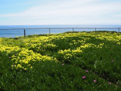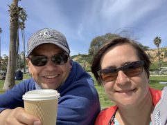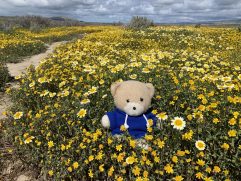 Wir haben ganz gut und vor allem durchgeschlafen. Da es hier kein Frühstück gibt, konnten wir uns Zeit lassen. Erst einmal einen Kaffee im Bett und dann ab unter die Dusche. Das Wetter war besser, als angekündigt und so konnten wir gleich in kurzer Hose los. Erstes Ziel das iHop zwei Blocks Richtung Downtown und frühstücken. Das war schon mal ein richtig guter Start in den Tag. Heute war auch der zweite Tag dieser Reise, an dem wir das Auto stehen lassen wollten und das haben wir dann auch geschafft. Nach dem Frühstück ging es durch Downtown an die Beachfront. Dort haben wir dann Stearns Wharf besichtigt und sind dann die Küste entlang Richtung Westen bis zum Shoreline Park (vielleicht noch ein kleines Stück weiter) gelaufen. Tolle Ausblicke auf das Meer und die Küste, wieder Wildblumen und sagenhaft gutes Wetter. Vielleicht etwas zu gut, denn das konnte man später im Gesicht merken. Auf dem Rückweg durch Downtown haben wir bei Santa Barbara Craft Ramen Halt gemacht und etwas gegessen. Steffi hatte Spicy Ramen Combo und ich den Ramen Salat. Beides super lecker und richtig guter Service. Dann ging es noch in die Paseo Nuevo an der State Street, denn wir mussten noch einige Dinge kaufen. Ganz oben auf der Shopping Liste stand die sehr gute Bodylotion von Bath & Body Works. Wir waren auch noch bei American Eagle, wo ich noch schnell zwei Teile gekauft habe. Eins davon passt ganz gut zu dem Motto für eine Einladung, die wir für Ende Mai haben. Dann ging es zurück zum Motel. Wir haben schon mal alles etwas zusammengepackt und uns einen Überblick über Platz und Gewicht der Koffer gemacht. Es ist alles im grünen Bereich und wir müssen wohl kein drittes Gepäckstück aufgeben. Im Tarif wäre es drin, aber man muss ja immer daran denken, dass man das Gepäck später auch noch tragen muss und da wir am Sonntag bestimmt mit der Bahn nach Hause fahren, ist jedes Gepäckstück weniger besser. Zum Abrunden dieser tollen und außergewöhnlichen Reise sind wir noch einmal nach Downtown gegangen und haben ein letztes leckeres IPA getrunken. Ich hatte dazu noch zwei sehr gute Empanadas. Steffi wollte nicht. Wir werden ja bald sehen, wie sich der Urlaub auf der Waage ausgewirkt.