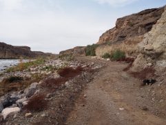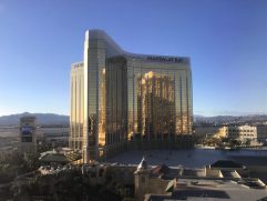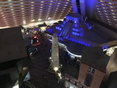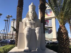 Wir haben super geschlafen und waren sichtlich geschockt, als wir heute Morgen aus dem Fenster geschaut haben – Schnee. Es hat doch tatsächlich über Nacht geschneit. Was ein Glück, dass wir einen Eiskratzer eingesteckt haben. So konnte ich mir in aller Ruhe die Finger abfrieren, während Steffi unter der heißen Dusche stand. Frühstück war ganz gut, denn es gab Bagels und frische Pancakes. Außerdem stimmte der Service. Bei Sonnenschein haben wir uns dann auf den Weg in Richtung Las Vegas gemacht. Wir hatten noch keinen vollständigen Plan für die heutige Route und so hat es sich kurzer Hand ergeben, dass wir ab Seligman erneut über die Route 66 bis Kingman gefahren sind. Den Stopp in Hackberry haben wir heute aber mal ausgelassen und den Abstecher nach Oatman haben wir uns für später aufgehoben. So sind wir ab Kingman direkt über die US-93 nach Norden gefahren. In der Lake Mead Recreation Area haben wir einige Stopps eingelegt und sind auf Nevada Seite schließlich den Owl Canyon Trail gelaufen. Ein toller Slot Canyon, der auch unter zwei Straßen verläuft. Gegen 15 Uhr haben wir dann die Fahrt nach Las Vegas fortgesetzt. Natürlich sind wir kurz vor unserem Ziel in sehr dichten Verkehr geraten, haben aber noch relativ zeitig im Self Parking Parkhaus am Luxor den Wagen abgestellt. Mit allem, was wir tragen konnten, sind wir dann zur Rezeption gelaufen. Eine sehr lange Schlange, in der ich bestimmt mehr als eine halbe Stunde anstehen durfte. Dann aber ging es sehr schnell und wir konnten rauf in den 20ten Stock in unseren Premium King Room für die nächsten drei Tage. Schnell unter die Dusche und dann wieder los, denn um 19:30 Uhr ist One by Michael Jackson (so dachte ich) und wir wollten vorher noch etwas essen. Am Ende ist es Pizza im Food Court geworden und dann ging es auch gleich rüber ins Mandala Bay. Die Gäste strömten schon ins Theater und zu ihren Plätzen, was wir dann auch gemacht haben (was für ein Glück). Steffi hatte gerade noch erwähnt, dass wir jetzt noch ewig warten müssen, da ging das Licht aus und die Show begann. Punkt 19 Uhr, ups, falsch gemerkt und noch einmal Glück gehabt. Die Show war der Wahnsinn. Cirque du Soleil Michael Jackson One. 90 Minuten Akrobatik, Show, Tanz und die Musik des King of Pop. Manchmal etwas laut, aber egal. Dafür haben die es mal wieder mit der Klimaanlage übertrieben. Zum Abschluss des Tages gab es noch ein Bier an der Bar und dann mit dem schräg fahrenden Aufzug (wir sind ja in einer Pyramide) wieder nach oben.