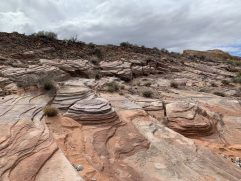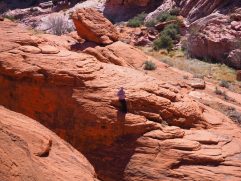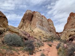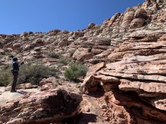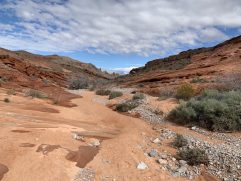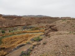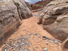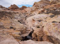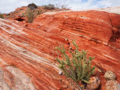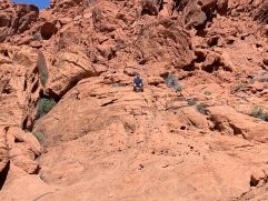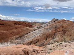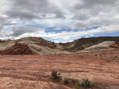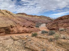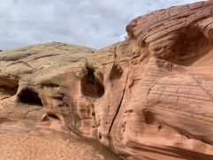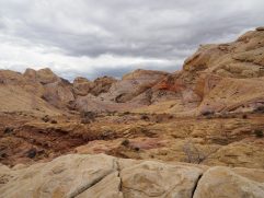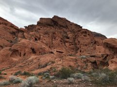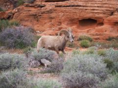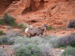 Hier schläft es sich richtig gut, nur der Kaffee vor dem Aufstehen fehlt. Ich möchte aber auch nicht nach unten, um Kaffee zu holen. Der Weg ist so weit, da ist der teure Kaffee gleich schon wieder kalt. Also sind wir zusammen und in Wandermontur runter, sind direkt zum Auto gegangen und dann Richtung Osten gefahren. Es ging einmal quer durch die Stadt zum Boulder Station Hotel Casino, wo wir erst einmal in Ruhe gefrühstückt haben. Viele leckere Sachen zu einem guten Preis. Dann ging es weiter in die Lake Mead Recreation Area und dort zunächst über den Wetlands Trail und anschließend noch über der Red Stone Trail. Leider war das Wetter bis zum Mittag sehr wechselhaft und so hat es zwischendurch auch immer mal wieder etwas geregnet. Gegen Mittag haben wir die Recreation Area verlassen und sind gleich links in Richtung Valley of Fire State Park abgebogen. Die East Entrance Station war nicht besetzt und so haben wir schnell Self Pay gemacht und sind zum Visitor Center gefahren. Dann ging es rauf zum Parkplatz P3, wo der Wave Trail startet. Nur deshalb waren wir heute dort. Am Ende des Trails haben wir jedoch nicht, wie schon zweimal zuvor, umgedreht und sind zurückgelaufen, sondern wir sind in den Wash hinabgestiegen und haben diesen und einen weiteren Trail zu einem Loop verbunden. Es war total super und hat uns viele geniale Momente bereitet. Auch lustiges, denn in zwei Slot Canyons stand Wasser, so dass wir alternative Wege finden mussten. Am Ende haben wir über den Trail gesiegt. Von dort aus ging es dann auf direktem Weg zurück nach Las Vegas und kurz vor der West Entrance Station ist dann etwas passiert, an das wir schon gar nicht mehr geglaubt hatten: wir haben nach sechs Jahren und vielen Rundreisen durch den Südwesten der USA endlich unsere ersten Bighorn Sheeps gesehen. Sieben Rams, also Männchen. Der perfekte Abschluss im Valley of Fire. In Vegas angekommen, haben wir uns frisch gemacht und sind dann durch das Excalibur rüber ins New York New York zum Abendessen gegangen. Wir waren dort im America und es hat wirklich gut geschmeckt. Zurück sind wir vom Excalibur mit der Monorail zum Mandala Bay gefahren und von dort wieder ins Luxor gelaufen. Wir haben uns noch Getränke gekauft, 30 Minuten mit 2.00 US$ am Einarmigen Banditen gespielt und sind dann nach oben gefahren.