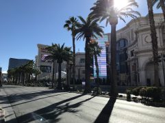Obwohl wir gut geschlafen haben, waren wir Beide heute Morgen total gerädert. Lag wahrscheinlich am Bier gestern. Wir haben etwas getrödelt und sind so zu spät losgekommen, um noch irgendwo zeitig beim Buffet zu sein. Also ging es gleich Richtung Süden und bei den Las Vegas Premium Outlets haben wir dann bei Subway gefrühstückt. Anschließend ging es über die NV-160 und weiter über die NV-159 in die Red Rock Recreation Area. Wir sind zwei schöne Trails gelaufen, haben aber oft den eisigen Wind zu spüren bekommen, der heute den ganzen Tag über Las Vegas und die Umgebung wehte. Gegen Mittag waren wir wieder zurück im Luxor und waren auf unserer Tour durch den Canyon auch erfolgreich: einige wilde Esel und einen Kolibri haben wir gesehen. Leider sind wir Beide inzwischen etwas erkältet, hoffen aber, dass es nicht noch schlimmer wird. Mittlerweile sind wir auch mit dem Routing etwas weiter. Über Needles und Mojave geht es an die Küste nach Monterey. Von dort über den Pacific Coastal Highway bis Santa Barbara. Gegen 3.00 pm sind wir los zum Las Vegas Blvd. Wir haben uns das MGM Grand angesehen, sind mit der Monorail bis zum Harrah’s gefahren und anschließend über den Strip wieder in Richtung Süden gelaufen. Dann sind wir vom Bally’s ins Paris gegangen und weiter durch die Miracle Mile Shops. Gordon Ramsey hat hier in Vegas inzwischen vier Restaurants (haben wir heute alle gesehen). Gegessen haben wir allerdings bei Panda Express und sind dann kurz zurück ins Hotel gegangen. Da es wirklich recht frisch war, mussten wir noch eine weitere Schicht Klamotten nachlegen, bevor wir ins Planet Hollywood gegangen sind. Wir hatten Tickets für Gwen Stefani im Zappos Theater. Es waren richtig super gute zwei Stunden mit toller Musik und Show. Anschließend mussten wir noch einmal den ganzen Weg zurücklaufen. Zum Glück hatte der Wind nachgelassen. Erstaunlicherweise war auf der Straße gar nicht mehr so viel los, waren wohl alle schon drinnen.