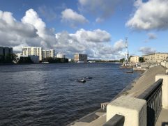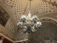 Das Ballet am gestrigen Abend war wirklich super. Steffi hat über das ganze Gesicht gestrahlt und das bedeutet mir mehr als alles andere. Aber es hat auch mir sehr gut gefallen. Ein tolles kleines Theater und wir saßen den Musikern fast auf dem Schoß. Tolles Ensemble, hat richtig Spaß gemacht. Wir sind sogar trocken geblieben. Das mit den Sitzplätzen im Theater aber irgendwie nicht direkt. Die Platzanweiserin hat uns auf die Plätze 11 und 12 gesetzt, obwohl auf den Tickets 21 und 22 stand. Aber man denkt sich ja erst einmal nichts dabei. Wer bin ich denn, dass ich ihr ihren Job erkläre? Das ist ja so gar nicht meine Art. Ist aber aufgefallen, denn vier Personen auf zwei Sitzplätzen funktioniert halt nicht. Am Ende war es dann schon 23 Uhr durch, als wir wieder zurück am Schiff gewesen sind. Es war halt auch noch immer voll in der Stadt und auf den Straßen. Heute Nachmittag dann noch Eremitage. Der Vormittag war noch einmal zum Entspannen und im Gegensatz zu gestern, schien heute auch wieder die Sonne. Um 13:30 Uhr sind wir mit dem Bus in die Stadt gefahren. Mit einer kleinen Verspätung waren wir dann im Museum (das drittgrößte der Welt). Natürlich kratzt man in zwei Stunden nur an der Oberfläche, aber wenn man mal die ganzen Exponate ausblendet und nur die Räume mit ihrer Gestaltung erfasst und genießt, dann hat es sich doch schon gelohnt. Die Decken und Wände, die Kronleuchter, die Böden oder die riesigen verzierten Holztüren. Ein absoluter Genuss. Aber immer im Hinterkopf behalten: Es war ursprünglich als Zaren-Palast gebaut worden und wurde später erst ein Museum. Wir waren gerade beim letzten Abendessen und haben den Koffer schon gepackt. Morgen noch bis 11 Uhr in Ruhe auf die Abreise vorbereiten und dann geht es zum Flughafen in Sankt Petersburg.