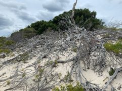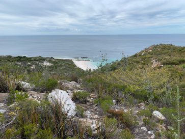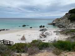 Auch die letzte Nacht war wieder mit Unterbrechungen versehen, aber zum Glück immer nur kurz. Wenn wir morgens aufwachen und die Nachrichten lesen, dann kreisen die Gedanken. Zum einen scheint man hier in Australien super weit weg und sicher zu sein, zum anderen fragt man sich natürlich für wie lange noch. Die brennendste Frage ist dann allerdings, ob man überhaupt noch nach Hause kommt. Aber das eigentliche Problem des heutigen Tages war die Suche nach dem Frühstück. Wir sind hier aktuell in the Middle of Nowhere. Nach mehreren Anläufen waren wir dann in einer Bakery. Dort hat man sich richtig viel Mühe gegeben und alles war frisch zubereitet und super lecker. Am Ende waren wir alle zufrieden und das ist doch das Wichtigste. Anschließend haben wir im IGA noch einmal die Getränkevorräte aufgefüllt und sind dann langsam in den Fitzgerald River National Park gefahren. Richtig gut und hat super viel Spaß gemacht. Tolle Strände, geniale Lookouts und ein super Trail hinauf auf Mount Barren. Der Trail war wirklich anstrengend, da man die ganze Zeit hoch konzentriert bleiben musste. Am Ende gab es noch einen zweiten Trail durch Wald und Dünen an einen weiten und einsamen Strand. Ich habe mit den Füßen mal das Wasser getestet, empfand es aber als zu kalt, um im südlichen Ozean zu schwimmen. Aber ich hatte meine Füße drin, sogar zweimal. Denn nachdem wir Ruth und Michael am Motel abgesetzt hatten, sind Steffi und ich noch einmal zurückgefahren. Ich wollte unbedingt noch in die kleine Barren Bay und auch dort waren wir ganz alleine. Super geeignet für die Drohne. Es war herrlich und uns sind wieder einmal tolle Aufnahmen gelungen. Auf der Rückfahrt haben wir uns noch den Rest von Hopetoun angesehen und waren doch etwas überrascht, noch so viele Häuser abseits der Hauptstraße zu finden. Zurück im Motel wurden wir dann von einer E-Mail des Reiseveranstalters (nur die Rundreise) überrascht. Es wurde die Empfehlung ausgesprochen, die Reise zu beenden und nach Hause zu fliegen. Corona hat also jetzt die ganze Welt im Griff. Beim Abendessen haben wir dann gemeinsam entschieden, Esperance zu streichen und morgen über Hyden nach Perth zu fahren. Chris und Darren erwarten uns bereits. Die Stornierung der letzten Unterkünfte wird schwierig sein. Aber lieber jetzt nur 200 – 300 € zusätzliche Kosten, als später 14 Tage Quarantäne in einem Hotel o.ä. Wir könnten heulen, aber es ist jetzt nun einmal so. Von Perth aus können wir alles besser organisieren und auf Grund der Nähe zu einem Internationalen Flughafen auch schneller handeln.