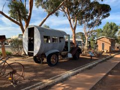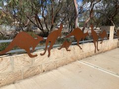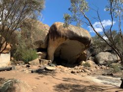 Gestern Abend waren wir noch einmal im Wavecrest BB zum Abendessen. War wieder super lecker. Als wir wieder im Motel waren, fing es richtig doll an zu regnen. Zum Glück musste niemand mehr raus. Die Nacht verlief ohne weitere Unterbrechungen und pünktlich um 8 Uhr habe ich beide Zimmerschlüssel in die Schlüsselbox geworfen. Es ging auf direktem Weg nach Ravensthorpe. Auch dort gestaltete sich das Thema Frühstück zunächst etwas schwierig. Das zuvor ausgesuchte Café hatte nur Take Away, weil der Sitzbereich noch nicht sauber war. Aber die Straße etwas weiter runter sind wir fündig geworden. Steffi und ich hatten leckere Omeletts. Dann ging es auf direktem Weg nach Hyden. Auf Grund der Zeitverschiebung nach Deutschland hatte ich noch keine Rückmeldung von unserem Veranstalter vorliegen, aber es hat auch so perfekt funktioniert. Als wir gegen 11:45 Uhr in Hyden angekommen sind, bin ich gleich zur Rezeption und habe die Lage erklärt. No worries! Er hat uns einfach für Freitag ausgetragen, für heute eingetragen und mir sofort die Schlüssel in die Hand gedrückt. Schauen wir mal, ob der Rest auch so easy geht. Wir haben kurz das Gepäck in den Zimmern verstaut und sind dann direkt zum Wave Rock gefahren. Da waren sie dann auch schon wieder, die lästigen Quälgeister. Wir wurden wieder regelrecht von Fliegen belagert. Es hat die Faszination vom Wave Rock aber nur leicht gemindert. Einmal entlang der Welle, dann eine ganze Runde oben drüber und den Loop Trail zum Hippo Yawn. Anschließend haben wir uns zum Schutz vor den Fliegen und auch weil wir Durst hatten, ins Café verzogen. Die Fahrt zu The Humps hat sich nicht gelohnt, denn auch dort hat es von Fliegen nur so gewimmelt. Zurück in Hyden haben Steffi und ich uns noch den Ort angesehen und bei noch einige Bilder von diversen Kunstobjekten neben den Bahngleisen gemacht. Für unseren Heimflug haben wir zwar eine Idee, sind aber noch nicht weiter. Ich habe gerade einmal SWISS angeschrieben. Mal sehen, ob sie antworten. Bei der Fülle an Anfragen wird es wahrscheinlich alles etwas länger dauern. Morgen geht es definitiv erst einmal zu Chris und Darren.