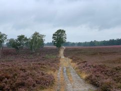 Letzte Nacht ist ein heftiges Gewitter über uns hinweg gezogen. Bei jedem Blitz war es kurzfristig richtig hell im Zimmer. Unser Schlaf wurde dadurch aber nur kurz unterbrochen. Richtig geweckt hat uns erst der Wecker um 7 Uhr. Eine Stunde später saßen wir beim Frühstück. Die Wetteraussichten für den heutigen Tag waren richtig übel. Trotzdem haben wir an unserem Plan, vormittags Outlet Center und ab Mittag Süd Heide, festgehalten. Erstaunlicherweise sind wir die meiste Zeit auch relativ trocken durch den Tag gekommen. Im einem größeren Bogen über Undeloh und Handeloh sind wir nach dem Frühstück ins Designer-Outlet Soltau gefahren. Wir waren in einigen Läden, haben aber nicht viel gekauft. Weiter ging es über Bergen in die Süd Heide. Unterwegs haben wir mal einen Kaffee getrunken, ein paar Kleinigkeiten für unterwegs besorgt und in einem Schuh-Center doch noch ein paar Schuhe gekauft. Dann ging es zum Parkplatz Misselhorner Heide, wo wir trotz Wind und Regen noch einmal durch die blühende Landschaft gelaufen sind. Ruhe und Natur, davon hatten wir jetzt schon mal richtig viel. Der Rückweg zum Hotel führte uns durch Munster und Bispingen. Somit sind wir heute an zwei Punkten vorbeigekommen, an die wir alte, aber schöne Erinnerungen haben. Zunächst der Heidepark Soltau, wo wir 2004 auf unserem Weg in Richtung Frankreich ganz spontan gehalten hatten. Und dann Center Park Bispinger Heide, wo wir vor 15 Jahren meinen Geburtstag verbracht haben. Für heute Abend haben wir vorgesorgt und bei uns im Hotel einen Tisch reserviert. Dann müssen wir auch gar nicht mehr raus. Morgen verlassen wir dann die Heide und fahren über Lüneburg und Lauenburg rauf nach Wismar. Kilometer gefahren: 159