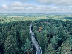 Das Hoi An gestern Abend war sehr gut und wir sind super satt geworden. Zudem hatten wir auch noch Glück, denn der heftige Regen war just in dem Moment vorbei, als wir die Rechnung bekommen haben. An Bord der Lydios haben wir uns noch eine zweite Runde Bier gegönnt und haben dann den Tag ausklingen lassen. Am Anfang war es echt warm im Zimmer und wir konnten nicht so gut schlafen. Später ging es dann aber. Heute früh dann die ersten Sonnenstrahlen zu sehen war super angenehm. Frühstück an Bord war auch gut und entspannt. Dann hieß es Abschied nehmen und für uns ging es knapp 30 km weiter nach Süden in die Lüneburger Heide. Wir sind im Heide Himmel gestartet. Ein Baumwipfelpfad mit einer tollen Aussichtsplattform am Ende der Strecke. Da wir mit die ersten Besucher gewesen sind, konnten wir ganz entspannt über die Brücken laufen. Da wir den ganzen Tag Zeit eingeplant hatten, haben wir uns gleich das Kombi-Ticket für Heide Himmel und Wildpark Lüneburger Heide gekauft. Der Übergang zum Wildpark ist gleich am Fuß des Aussichtsturms. Sehr praktisch, denn nach der Runde durch den Wildpark kann man direkt wieder zurück zum Heide Himmel. Auch im Wildpark war es zunächst sehr entspannt, denn wir sind ja auf der Rückseite gestartet. Nach der Hälfte der Runde kamen wir zum Haupteingang und dort wurde es auch gleich voller. Sehr großzügige Gehege, viele Tiere, zwei Bären (Zwillinge), die in Hagenbeck geboren sind. Dazu zwei große begehbare Gehege mit Rehen. Trotz der Größe des Parks sind wir gegen Mittag am Ende gewesen und da das Wetter einigermaßen beständig war, sind wir zu einer Runde durch die Heide aufgebrochen. Wir haben einfach das morgige Ziel Wilseder Berg vorgezogen. Super geniale Wanderung durch die Lüneburger Heide. Alles in voller Blüte und imposante Aussichten. Pünktlich zum Ende unser doch sehr langen Runde fing es an zu regnen und wir sind gleich nach Egestorf ins Hotel Acht Linden gefahren. Wir waren schnell auf unserem Zimmer, konnten zunächst aber keinen Tisch fürs Abendessen bekommen – war schon alles reserviert. Nachdem wir einige Zeit erfolglos umhergeirrt sind, haben wir im Hotel gegenüber doch noch einen Tisch bekommen. Essen war gut und Service auch. Am Ende haben wir im Linden Pub (klingt spannender, als es ist) noch ein Bier zu uns genommen und dann war der Tag so gut wie vorbei. Kilometer gefahren: 82 + sinnlos weitere 24