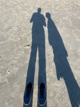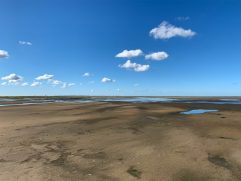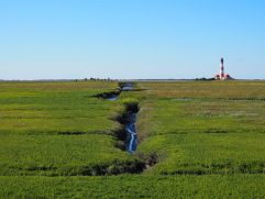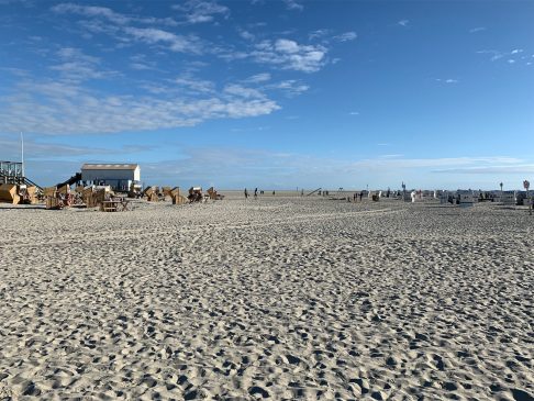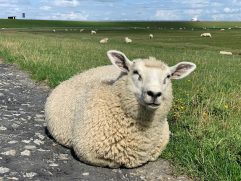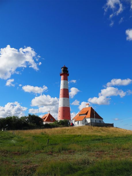 Die Nacht war etwas unrund. Anfangs viel zu warm und später ging draußen im Treppenhaus das Licht über den Bewegungsmelder an, wenn wir uns im Bett gedreht haben. Ach ja, und dann verläuft hier noch die Bahnstrecke Husum – SPO mit vielen unbeschrankten Bahnübergängen. Richtig, an denen muss der Lokführer das Signal geben. Der erste Zug fuhr wohl gegen 5 Uhr früh hier vorbei. Gefrühstückt haben wir heute im Wellenreiter. Kostet extra und ist nicht ganz den Aufpreis wert, wie wir finden. Morgen suchen wir uns etwas anderes. Heute wollten wir mit dem Fahrrad los und hatten gestern extra noch telefonisch angefragt. Es gäbe zwar keine E-Bikes mehr, aber normale Fahrräder wären kein Problem. Heute morgen war dann nur sein Bruder vor Ort, der wusste von nix und verstand noch weniger. Aber er war bemüht, wenn auch gleich die gezeigten Leihräder nicht unseren Vorstellungen entsprachen. Wir haben unser Glück dann noch einmal in Garding versucht, hatten aber genauso wenig, wie der Laden Räder hatte. Also dann fahren und laufen. War am Ende auch die bessere Wahl. Wir haben super viel gesehen und hatten total viel Spaß. Einen tollen Leuchtturm, Westerhever, viele Schafe und gegen Mittag Reibekuchen mit Krabben und Matjes im Brötchen. Danach noch mehr Schafe und jede Menge Sonne. Die grandiosen Schäfchenwolken haben mich dazu animiert, eine Zeitrafferaufnahme zu machen. Wusstet ihr, dass eine Aufnahme von 10 Sekunden Laufzeit eine gute Viertelstunde dauert? Nee, jetzt wisst ihr es. Es war ein richtig toller Tag. Am Nachmittag noch mit frischer Waffel und Kaffee/Kakao. Die Getränke für heute Abend haben wir unterwegs bei Edeka gekauft. Gekauft haben wir auch Ausflugstickets für morgen. Dann fahren wir mit dem Schiff durch das Wattenmeer auf eine Hallig. Wir hoffen auf Seehunde. Kilometer gefahren: 135