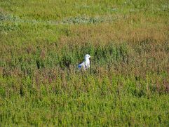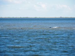 Nach einer ruhigen und erholsamen Nacht sind wir heute früh zeitig aufgebrochen und zunächst nur die paar Kilometer bis Garding gefahren. Dort haben wir uns in eine Bäckerei gesetzt und gefrühstückt. Genauso gut wie gestern, nur für die Hälfte des Preises. Dann ging es weiter nach Nordstrand, wo wir für 4,00 € den ganzen Tag am Hafen geparkt haben. Die Adler V lag zwar schon im Hafen, war aber noch nicht abfahrbereit. Wir waren aber auch viel zu früh. Also haben wir noch eine Runde über den Deich gedreht und sind dann an Bord gegangen. Bei bestem Wetter wollten natürlich alle draußen auf dem Oberdeck sitzen. Wir hatten Glück und haben noch Plätze in der Mitte ergattern können. Ganz im Sinne der Abstandsregeln haben wir uns selbstverständlich gegenübergesetzt und nicht nebeneinander. Das Schiff war trotzdem gut gefüllt und auch noch einige Familien mit Kindern waren an Bord. Im Süden Deutschlands startet die Schule halt erst nächste Woche wieder. Wir sind pünktlich um 12 Uhr gestartet und haben mit der auflaufenden Flut 90 Minuten später an der Hallig Gröde angelegt. Nun gut, haben wir das auch mal gesehen. Nach 1,5 Stunden Aufenthalt haben wir wieder abgelegt und sind weiter durch das Wattenmeer gefahren. Langeneß, Föhr, Hallig Nordstrandischmoor, Hamburger Hallig und Pellworm, um nur einige Punkte zu nennen, die wir heute passiert haben oder die in Sichtweite gekommen sind. Wir haben uns auf der Fahrt in jedem Teil Schiffes aufgehalten. Wir haben getrunken und gegessen, ich habe ein Glas zerdeppert und die Seehunde haben wir auch gesehen. Jede Menge sogar. Das war bei ablaufendendem Wasser und spannend zu sehen, wie plötzlich eine Sandbank auftaucht und gleich von den Tieren in Besitz genommen wurde. Um kurz nach 18 Uhr waren wir wieder im Hafen und schnell von Bord. Wir sind bis Husum gefahren und haben im Binnenhafen noch etwas gegessen. Auf der MS Nordertor hatten wir ganz leckere Nordipas. Norddeutsche Häppchen. Wir hatten Labskaus, Lammbratwurst, Sauerfleisch, Ziegenkäse gratiniert und Schwarzbrot mit Krabben und Spiegelei. Das war der perfekte Abschluss. Mit ein paar kleineren Schlenkern sind wir dann fast auf direktem Weg zurück nach Tating gefahren. Dabei immer der untergehenden Sonne entgegen. Jetzt liegt bereits die letzte Nacht vor uns, bevor es morgen endgültig nach Hause geht. Wir konnten aber noch einmal reichlich Sonne tanken und uns erholen. Kilometer gefahren: 126