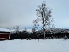 [08:14] Happy Namenstag to me! Beim Frühstück heute war aber wieder einmal so gar nichts los. Das mag damit zusammenhängen, dass wir unser Ziel Narvik erst um 11 Uhr erreichen und die Wetteraussichten alles andere als gut sind. Wenn wir jetzt von unserer Kabine hinaus schauen, dann ist schon klar was uns erwartet. Nun denn, heute sitzen wir im Zug. Da wird es nicht so schlimm werden. Wir fahren mit dem Arctic Train Richtung Grenze zu Schweden. Dies ist die nördlichste Bahnstrecke in ganz Norwegen. [16:03] Hat alles geklappt heute und noch etwas mehr. Wir waren natürlich wieder zeitig an Deck und haben nach irgendetwas Ausschau gehalten. Am Ende bleibt zumindest immer die tolle Landschaft. Heute gab es aber noch ein Extra oben drauf, denn Steffi hat mit ihrem Fernglas Schweinswale entdeckt. Die Einfahrt nach Narvik war dann etwas wenig spektakulär. Ich hätte mir diesen bedeutsamen Erzhafen doch größer vorgestellt. Um kurz nach 11 Uhr haben wir uns im Science Center gemeldet und konnten dann mit Bus Nr. 2 zum Bahnhof in Narvik fahren. Dort stand bereits der Arctic Train und hat auf uns gewartet- Punkt 12 Uhr wurden die Türen geschlossen und es ging los. Normalerweise ist die Strecke von Narvik bis Riksgränsen. Der Bahnhof wird allerdings auf Grund von Corona aktuell nicht angefahren. Somit endet die Fahrt in Bjørnfjell und nach einem kurzen Halt geht es direkt wieder zurück nach Narvik. Während der knapp zwei Stunden fährt man durch eine atemberaubende Landschaft immer entlang des Rombaksfjord, vorbei an Rombaksbotn und dabei stetig bergauf bis auf 761 Meter über dem Meeresspiegel. Es gibt bei der Hinfahrt zwei kurze Stops in Rombak und Katterat, wo man kurz aussteigen und Fotos machen kann. Während der Fahrt gab es zusätzlich vom Band die Geschichte der Zugstrecke sowie historische Einblicke in die Ereignisse von 1940 hier im Fjord. Da der Zug in Bjørnfjell nicht gedreht hat, wurden dort fairerweise die Plätze getauscht. So konnte jeder einmal pro Strecke den Blick auf den Rombaksfjord genießen. Zurück in Narvik haben wir trotz Regen auf den Bustransfer verzichtet und sind gelaufen. Wir hatten auch riesigen Hunger und wollten was lokal regionales essen. Als wir an den Fiskehallen Narvik vorbeigekommen sind haben wir uns spontan für das Fiskekroken Restaurant entschieden. Super eingerichtet, super frisch und absolut lecker. Steffi hatte Crispy Skin Arctic char (Seesaibling) und ich den gegrillten Stockfisch. Natürlich habe wir auch wieder getauscht (machen wir fast immer), es war mehr als genug auf dem Teller und natürlich hatten wir auch wieder lokales Bier. Jetzt sind wir wieder an Bord und genießen wie gewohnt die heiße Schokolade auf Deck 8. Nachdem ich mir gestern noch einen Cookie besorgt hatte, kann ich heute ganz gut darauf verzichten. Bin echt satt. [20:44] Der Urlaub ist irgendwie echt anstrengend, keine Ahnung warum. Ich hätte vorhin einschlafen können. Steffi hat es glatt gemacht. Ich bin mit der Ausfahrt aus Narvik um kurz nach 19 Uhr noch einmal draußen auf Deck 5 gewesen. Es gab aber nichts zu sehen, außer ein fast komplett bewölkter Himmel. Jetzt sind wir gerade zurück vom Abendessen im Aune. War wieder gut, auch wenn die Speisekarte nicht ganz mit dem angekündigten Abendessen übereinstimmte. Zum Glück sind die Portionen auch nicht so groß, man weiß ja sonst gar nicht mehr wohin damit. Jetzt gehen wir gleich noch ein letztes Mal für heute an Deck. Eigentlich wissen wir ja dank der Aurora App, dass wir nichts sehen werden. Wir überzeugen uns nur lieber gerne selber davon. Morgen ist dann Seetag und wir bekommen ausreichend Zeit nach Wild Life zu schauen. Wir werden wie gewohnt gegen kurz nach 7 Uhr zum Frühstück gehen und dann mal sehen, was der Tag so bringt.