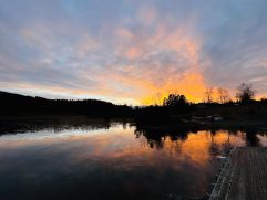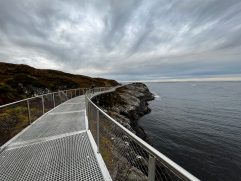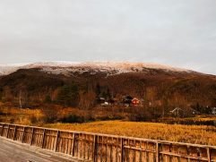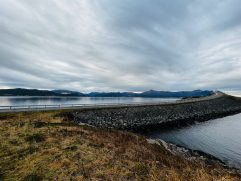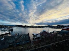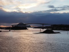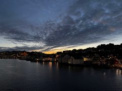 [10:34] Wie gestern angekündigt sind wir heute zeitig aufgestanden, um pünktlich um 7 Uhr beim Frühstück zu sein. Die Idee hatten andere auch und so war es schon etwas voller, als die letzten Tage eine gute halbe Stunde später. Zur Einfahrt nach Kristiansund standen wir aber schon draußen an Deck und um kurz nach 8 Uhr haben wir die Otto Sverdrup verlassen. Ich hatte eine nette Runde bei All Trails herausgesucht, die wir auch sofort angegangen sind. Die Tour Kristiansund Havstien führte einmal durch den Lion Park. Ganz toll angelegt und geniale Ausblicke auf die Stadt, den Sund und das Meer. Es dauerte auch wirklich sehr lange, bis wir auf die ersten Mitreisenden getroffen sind. Oben am Varden haben sie sich dann schon wieder getummelt. Zurück zum Schiff kamen wir ein zweites Mal am Svanedammen vorbei. Schon auf dem Hinweg hatten wir die ganzen Tauben gesehen, die auf dem Zaun saßen. Jetzt fühlten sie sich aber irgendwie angelockt und kamen zu Hunderten auf uns zu gelaufen und geflogen. Ein irres Spektakel, welches sich nach ca. 30 Sekunden selbst wieder aufgelöst hat. Wir liegen noch bis 12 Uhr hier in Kristiansund, warten aber auf den Bus der uns nach Molde bringt. An unserem Kabinenfenster fährt gerade die MS Maud vorbei. [18:15] Um 11:15 Uhr standen wir am Science Center für die Bustour über die berühmte Atlantikstraße an. Es wurde nach Decks aufgerufen und wir waren dieses Mal ziemlich die letzten. Und da gefühlt irgendwie alle diesen inkludierten Ausflug mitgemacht haben, hat es auch entsprechend gedauert. Bus Nr. 6 war dann mit 35 Gästen, Silvia vom Expeditions Team, dem Guide und dem Fahrer beladen und dann ging es auch los. Die Strecke führte von Kristiansund über die Atlantikstraße nach Molde. Als erstes ging es durch einen etwas mehr als 5 Kilometer langen Tunnel unter dem Atlantik auf die Insel Averøy. An der tiefsten Stelle waren wir 250 Meter unter dem Meeresspiegel. Ganz schön viel Gestein und Wasser über uns. Es gab unterwegs zwei längere Fotostopps. Einen auf Lyngholmen mit Blick über den Atlantik und auf die größte der insgesamt sechs oder sieben oder gar acht Brücken. Da scheiden sich die Geister und das Internet. Jedenfalls war der zweite Stopp im Fischerdorf Bud (ausgesprochen ”Bü”). Unser Guide Konstanze aus Deutschland und vor 3,5 Jahren nach Norwegen gezogen, hat uns permanent mit Informationen und Geschichten versorgt. Das war richtig gut und auch spannend. Kurz vor Molde haben wir noch einen Abstecher nach Skaret gemacht. Ein kleines Feriendorf mit Hotel, Ferienhäuser und Restaurant. Dort gab es Fischsuppe mit Muscheln und zum Nachtisch Karamell Flan. War beides richtig lecker. Nach dem Essen waren wir noch am See und bei perfektem Licht konnten wir noch tolle Fotos machen. Bei unserer Stadtrundfahrt durch Molde zurück zum Schiff (war inzwischen ohne uns von Kristiansund hierhin gefahren) wurden wir noch mit einem sensationellem Sonnenuntergang verabschiedet. Zuvor gab es noch ein kleines Märchen von drei Brüdern und einem Troll und die Sache mit dem Karamellkäse. Bei unserer Fahrt durch Elnesvågen hat Konstanze erzählt, dass in diesem Ort der Gudbrandsdalen erfunden worden ist. Und irgendwie hat sie gar nicht mehr aufgehört davon zu erzählen, wie toll der Karamellkäse auf warmen Pancakes weich wird und was das für ein Erlebnis für den Gaumen ist. Steffi und mir lief schon das Wasser im Mund zusammen, denn auch wir finden den Gudbrandsdalen auf warmen Waffeln ganz lecker. Zurück am Schiff kamen die Busse natürlich fast alle kurz hintereinander an. so dass es einen kleinen Stau gab. Wir sind nur kurz auf die Kabine und dann gleich auf Deck 8. Dort gab es zum Auslaufen Hot Dog und Bier und dann in der Explorer Lounge noch Heiße Schokolade. Irgendwann, kurz bevor wir abgelegt haben, kam auch die MS Maud (auch ein Expeditionsschiff von Hurtigruten) in Molde an. Deren Gäste werden wohl dasselbe erlebt haben, wie wir (oder zumindest so ähnlich). Jetzt haben wir Kurs auf Bergen gesetzt und erreichen somit morgen unseren letzten Stopp vor der Heimreise nach Hamburg. Es fühlt sich diese Mal schnell und auch langsam an. [20:56] Waren gerade noch beim Abendessen. Konnten uns zuerst gar nicht entscheiden, ob Aune oder Fredheim. Am Ende ist es doch wieder das Aune geworden. Auch dieser Urlaub sorgt, neben den tollen Eindrücken und Erlebnissen, auch wieder für viele neue Reiseideen bei uns. Am Ende müssen wir aber feststellen, dass wir vor allem zu wenig Zeit haben alle zu verwirklichen…ach Moment mal. Ab Januar sind wir ja beide in Teilzeit. Zeit ist dann also nicht mehr das Problem. Ich werde das Gefühl nicht los, dass wir in Tradition zu 2006 wieder einen Zehnerplan aufstellen sollten mit den wichtigsten Zielen für die kommenden Jahre. Das letzte Ziel unseres ersten Zehnerplans hoffen wir Ende 2022 zu erreichen. Dann beginnt eine neue Zeitrechnung: ANZ.