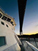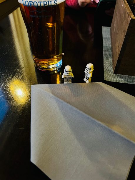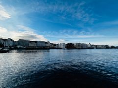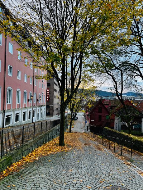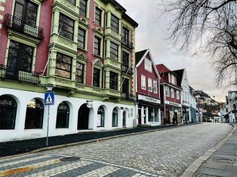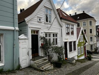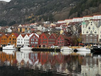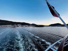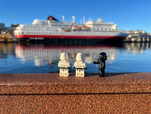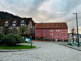 [14:56] Unglaublich, der Tag ist schon fast vorbei und ich habe bis jetzt noch keine Zeile auf Papier gebracht. Aber das lässt sich sehr leicht erklären: volles Programm. Um 7 Uhr saßen wir schon wieder beim Frühstück um pünktlich zum Sonnenaufgang draußen an Deck zu stehen. Ja, richtig gehört – Sonnenaufgang. Bergen ist ja nach unserer Einschätzung Rain Capitol of Europe, aber heute gab es tatsächlich nicht einen Tropfen Regen. Ganz im Gegenteil, denn zwischenzeitlich schien sogar die Sonne. Um kurz nach 9 Uhr sind wir von Bord gegangen und 5 Stunden durch Bergen gelaufen. Wir erinnern und kurz: Bergen ist seit heute unsere zweit häufigst besuchte Stadt weltweit (Hamburg als Nachbarstadt ja nicht mitgezählt). Zurückgelegt haben wir gute 15 Kilometer. Wir haben unterwegs im Dromedar Kaffe einen leckeren Hazelnut Latte und einen PSL getrunken und haben natürlich bei Trekroneren den Rendyr Pølse gegessen. Ich habe mir auch noch einen mit Lammwurst genehmigt. Am Ende gab es noch ein leckeres Softeis mit ordentlich Kakaopulver on top. In Bergen ist heute großes Treffen der Hurtigruten Familie. Neben den beiden Expeditionsschiffen MS Otto Sverdrup und MS Maud liegen im Hafen auch die Linienschiffe MS Trollfjord und MS Nordkapp. Mehr geht auch nicht, denn es ist kaum noch freier Liegeplatz im Hafen. [21:43] Pünktlich um 16 Uhr haben wir Bergen verlassen und bei unserer Ausfahrt konnten wir noch einmal die drei anderen Hurtigruten Schiffe sehen. Zuvor bin ich noch kurz auf Deck 4 gewesen, um mir die erste von zwei Steuererstattung auszahlen zu lassen. Das war für unseren kleinen Einkauf im Souvenir Shop am Nordkapp und am Ende gab es gerade einmal 5 € wieder. Die Erstattung der Umsatzsteuer für Steffis Stiefel mache ich dann per App von zu Hause aus. In der Tat sind es zwei unterschiedliche Unternehmen und deshalb auch unabhängig voneinander zu behandeln. Bei der Ausfahrt haben wir noch einige Zeit an Deck gestanden, aber irgendwann wurde es dann doch wieder zu ungemütlich. Nachdem wir uns etwas aufgewärmt hatten, haben wir im TV die Übertragung des Rückblicks zur Reise sowie die Informationen zur Ausschiffung von Deck 4 live gesehen. Wir haben inzwischen auch unsere Ausschiffungszeit bekommen. Wir sind Gruppe Gold und können/dürfen/müssen die MS Otto Sverdrup am Dienstag um 8:30 Uhr verlassen. Passt ganz gut, sind wir zeitig zu Hause. Die Wetteraussichten für morgen sind auch gut, wir rechnen aktuell nicht mit einer Verspätung. Gut ist auch, dass wir einige Wochen nach Ende der Reise ein Schiffslogbuch online erhalten, wo wir noch einmal alle Informationen der Reise sowie Zugriff auf die Bilder des Fotografen bekommen. Vor dem Abendessen waren wir noch auf einen Glühwein in der Explorer Lounge und dann im Aune. Jetzt werden wir schlafen und morgen noch einmal den Seetag genießen.