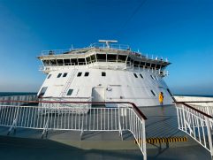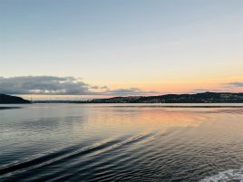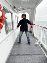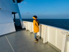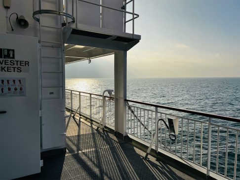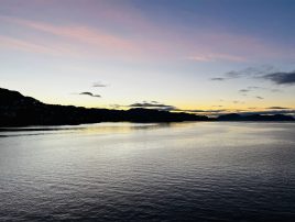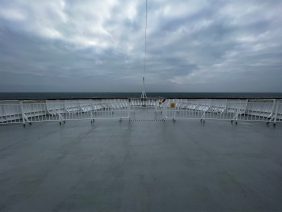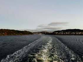 [09:46] Ich habe gerade mein Buch zu Ende gelesen. Mein erstes Buch auf dieser Reise. Eigentlich wollte ich viel mehr Bücher lesen, bin aber nicht dazu gekommen. Auch wollte ich an deutlich mehr Aktivitäten an Bord teilnehmen, bin aber nicht dazu gekommen. Stellt sich jetzt natürlich die Frage, warum bin ich nicht dazu gekommen? Auf jeden Fall ist es nicht so, dass ich nur in der Kabine abgehangen und nichts getan habe. Wir haben immer sehr viel Zeit draußen auf Deck 5 verbracht und auf das Meer und die Landschaft geschaut. Immer auf der Suche nach dem perfekten Motiv, dem einen Augenblick. Was die Tierwelt angeht, gab es auf dieser Reise leider nur sehr wenige dieser Momente. Aber die atemberaubende Landschaft hat dafür mehr als einmal entschädigt. Ein weiterer Grund war natürlich auch die viele Zeit an Land. Immer wenn sich die Chance auf einen Landgang geboten hat, haben wir sie genutzt. Nicht nur das, wir haben sie sogar meistens voll ausgenutzt. Also fehlte am Ende einfach die Zeit, das große Angebot an Bord zu nutzen. Womit ich auch wieder an dem Punkt angelangt wäre, den ich vor einigen Tagen bereits angerissen habe: aus unserer Sicht bieten sich andere Ziele besser für Expeditionen an. Das Konzept gefällt uns, wir würden nur ein anderes Zielgebiet wählen. Spitzbergen, Grönland oder Alaska wären atemberaubende Ziele, sollten wir noch einmal auf Hurtigruten Expedition gehen. Die MS Otto Sverdrup, unser Zuhause der letzten zwei Wochen, ist mehr als ausreichend. Sie bietet alles, was man für eine Expedition benötigt und auch noch etwas mehr. Einzig bei der Kabine würden wir beim nächsten Mal eine andere Wahl treffen. Deck 6 und etwas weiter hinten. Von dort kann man unbeschwert die Aussicht genießen und hat keinen Umlauf vor dem Fenster. Das Essen im Hauptrestaurant Aune war immer gut und reichlich. Allerdings sind wir schon froh, dass es mit dem Fredheim eine ”normalere” Alternative gibt. Man hat einfach nicht immer Lust auf das Angebot und Chi-Chi. Die besten Mahlzeiten, aber das ist erst einmal nur meine Meinung, die hatten wir auf unseren Landgängen. Allen voran das Bacalao in Svolvær und die Fiskehallen in Narvik. Zur gefahrenen Route habe ich ja schon einiges gesagt. Natürlich legt das Motto der Reise ”Auf den Spuren der Postschiffe” nah, dass wir viele bekannte Orte erneut besucht haben. Allerdings hatten wir mit Stavanger, Alta und Narvik auch drei neue Ziele angelaufen. Etwas mehr zu den Stopps und deren Highlights schreibe ich dann noch in der Zusammenfassung des Reiseberichts. Kurz um, es war eine tolle Reise, die morgen früh in Hamburg zu Ende gehen wird. Wir nehmen viele Erlebnisse mit nach Hause und sind so voll von tiefer Dankbarkeit, dass wir dies alles überhaupt erleben durften. Wir haben viele neue Ideen und es bieten sich uns tolle neue Perspektiven. Die Lust am Reisen ist ungebrochen, man muss uns nur lassen. [10:11] Draußen an Deck weht starker Wind. Vielleicht testen wir aber doch gleich mal, ob es auszuhalten ist. [11:59] Manche Dinge an Bord sind hin und wieder rätselhaft. Diese Nacht gegen 3 Uhr gab es einen Alarm auf den Gängen und alle Feuerschutztüren haben sich geschlossen. Wenn man so aus dem Schlaf gerissen wird hört man dreimal genau hin, ob auch alles in Ordnung ist. Jetzt fahren wir über die offene Nordsee und wechseln immer den Kurs. Wären wir Segler, die gegen den Wind fahren … sind wir aber nicht. Vorhin haben wir gefühlt auch einmal ganz gestoppt. Wird schon seine Richtigkeit haben. Wir haben jedenfalls gerade ein paar Runden auf Deck 5 gedreht, uns dem Wind völlig ausgesetzt und dann auf Deck 8 an der Schinkenverkostung teilgenommen. Schon lecker, wenn auch etwas salzig. Lecker riecht es auch auf der Backbordseite auf Deck 5. Steffi glaubt, dass dort gerade das Risotto zubereitet wird. Also nicht dort auf Deck, sondern in der Küche. [14:19] Sind gerade wieder zurück von einigen Außenrunden. Jetzt wird es leider richtig ungemütlich. Die Sonne ist vor 10 Minuten hinter einer dunklen Wolkendecke verschwunden und wird auch nicht wieder kommen. Bisher hat es aber weder angefangen zu regnen, noch ist die See rauer geworden. Unsere Position aktuell ist 55°38’N, 6°44’O. Das sollte ungefähr auf der Höhe von Kolding in Dänemark sein. Allerdings ist die dänische Küste an Backbord gute 50 Seemeilen entfernt. Unsere aktuelle Geschwindigkeit dürfte bei ca. 15 Knoten liegen. Bisher scheint alles nach Plan zu laufen. Zum Mittagessen waren wir noch einmal im Fredheim. Wir hatten beide den Farmer Burger mit Ziegenkäse und Rote Beete Marmelade. Jetzt gibt es erst einmal wieder ein Heißgetränk auf der Kabine, denn die Explorer Lounge ist zu voll. [17:33] Nach weiteren Runden über Deck 5 haben wir gerade das lästige Thema mit dem Kofferpacken hinter uns gebracht. Nach dem Abendessen noch schnell den Rest verstauen und dann werden sie vor die Tür gestellt. Die Reise hätte gerne noch ein paar Tage weitergehen können. Vielleicht Kristiansand, 2 Tage Oslo, dann Seetag, Kiel und NOK. Wäre doch gar nicht so schlecht gewesen. Die Klamotten hätten sogar noch gereicht, wir packen ja immer zu viel ein. [20:57] Das letzte Abendessen im Aune ist es leider auch Geschichte. Heute war einer der Höhepunkte, kulinarisch gesehen. Wir hatten Beef Wellington und es war vom Geschmack perfekt. Vorher waren wir noch auf Deck 8 in der Explorer Lounge und haben die Verabschiedung durch den Kapitän und vor allem dem Expeditions Teams live mit erlebt. Zum Abschluss gab es dann noch eine Slide-Show mit musikalischer Untermalung von unserem Bordfotografen Jan. Die ganzen Höhepunkte noch einmal zusammengefasst. Jetzt stehen unsere Koffer vor der Tür und wir lassen den letzten Abend so ganz langsam zu Ende gehen. Ich habe irgendwie versucht, die letzten zwei Wochen zeitlich zu erfassen. Es ist mir noch nicht gelungen. Das wir vor 14 Tagen gestartet sind kann ich so noch gar nicht fassen, dennoch waren wir lange unterwegs.