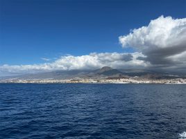 So langsam gewöhnt man sich an den Trubel hier, aber beste Freunde werden wir nicht – Teneriffa und wir. Nach einer fast perfekten Nacht waren wir wieder pünktlich um 8:40 Uhr beim Frühstück. Es war auch entspannter, als gestern. So hatten sie Zeit uns auch noch zusätzlich frisch gepressten Mangosaft und Sekt zu servieren. Dafür hatten wir darauf verzichtet, dass extra für uns noch zwei Tische zusammen gestellt werden. So habe ich heute mal alleine gesessen. Anschließend haben wir es uns auch nicht nehmen lassen dem Hard Rock Cafe Teneriffa einen Besuch abzustatten. Großes Cafe und kleiner Shop. HRC Tenerife klingt jetzt aber auch nicht so außergewöhnlich. Im Anschluss haben wir uns getrennt. Ruth ist zurück die Promenade entlang und Steffi und ich sind langsam zurück zum Hotel, uns für den Bootsausflug fertig machen. Wir hatten aber noch Zeit für eine weitere kleine Runde und so hatten wir schon zum Mittag unser Schrittsoll erfüllt. Um kurz nach halb Eins sind wir zum Hafen und haben auf einer Bank am Strand sitzend das Einlaufen der Bahriyeli abgewartet. Um 13 Uhr waren wir an Bord und hatten entspannte Plätze draußen auf dem Oberdeck. Wir haben bei bestem Wetter und leichtem Seegang eine schöne Runde vor der Küste gedreht und dabei auch einige Pilotwale gesehen. Nach gut zwei Stunden war dann auch die letzte Tour vorbei. Wir haben uns noch mit einer Cerveza gekühlt und sind dann zurück ins Reverón Plaza. Allerdings nicht, ohne vorher noch ein paar Leckereien beim Bäcker zu kaufen. Nach einer erfrischenden Dusche haben wir den größten Teil in die Koffer gepackt und uns für den morgigen Rückflug bei Condor eingecheckt. Da die Kanaren seit einigen Tagen kein Hoch-Risiko Gebiet mehr sind, reicht der Impfnachweis. Eine Einreiseanmeldung ist nicht mehr erforderlich. Um 18 Uhr haben wir uns zum letzten gemeinsamen Abendessen getroffen. Wir waren unten an der Promenade in einem Steakhouse, was auch wieder richtig gut gewesen ist. Leckeres Rinderfilet mit Bernaise. Auf dem Rückweg noch ein Eis und dann war der Abend vorbei. Morgen fahren wir gemeinsam zum Flughafen, auch wenn es für uns erst 1,5 Stunden später los geht.
