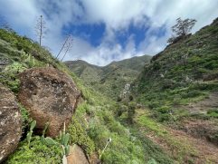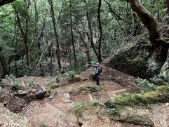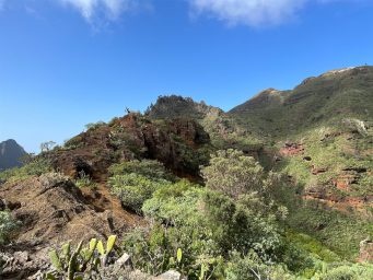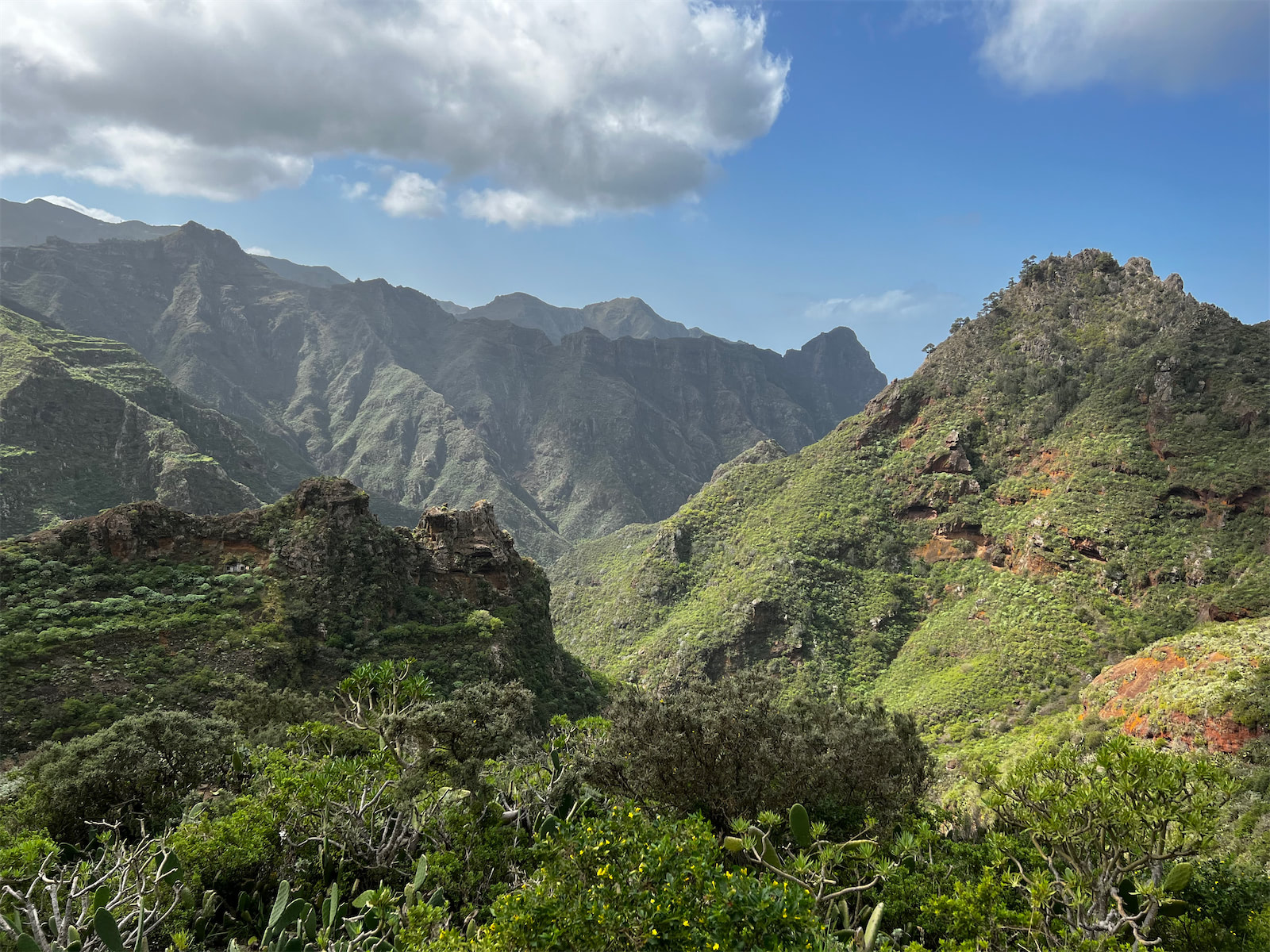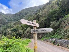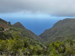 Heute haben wir nach dem Frühstück erst einmal unsere Zimmer bezahlt. Ich hatte Lanchi, so heißt unsere Gastgeberin, gesagt, dass wir uns hier wohl fühlen und die Sprachbarriere kein Problem darstellt. Sie hat sich riesig darüber gefreut. Frühstück war heute auch wieder richtig gut. Dann haben wir uns auf den Weg gemacht. Zunächst zum Punta del Hidalgo, wo ein futuristischer Leuchtturm steht. Leider haben wir die Zufahrt nicht gleich gefunden und ich wollte auch nicht zu viel Zeit darauf verwenden. Auf jeden Fall treffen sich an der Küste die Wellenreiter, davon haben wir jede Menge gesehen. Für uns ging es aber direkt weiter ins Anaga Gebirge. Startpunkt für unsere Wanderung war Cruz del Carmen. Da der Parkplatz schon recht voll gewesen ist, haben wir am Straßenrand geparkt. So wie viele andere auch. In einem kleinen Café haben wir uns noch mit ein paar Vorräten eingedeckt und schon waren wir auf dem Wanderweg TF-10 in Richtung Chinamada. Da es ein beliebtes Wanderziel und außerdem Wochenende ist, war es natürlich auch unterwegs etwas voller. Aber es hielt sich dennoch in Grenzen. Die etwas mehr als 6 Kilometer bis nach Chinamada haben wir auch ganz gut geschafft. Anfangs ging der Weg durch dichten Wald, wo es doch recht kühl gewesen ist. Aber je weiter wir nach unter gegangen sind, desto schöner wurde es. Am Ziel angekommen haben wir im Restaurant La Cueva etwas getrunken und uns dann auf den Rückweg gemacht. Eins war ja klar: wenn es hin fast nur bergab gegangen ist, muss es irgendwann auch wieder bergauf gehen. Zunächst ging es aber weiter bergab und das über ein richtig steiles Stück. Nach dem ersten kurzen Anstieg haben wir noch eine Pause eingelegt, bevor es dann immer auf und ab gegangen ist. Am Fuße der Ortschaft Los Botanes mussten wir dann eine Entscheidung treffen, denn uns lief tatsächlich etwas die Zeit davon. Wir hatten die gesamte Strecke mit den ganzen Stopps etwas unterschätzt. Also wurde entschieden, dass Ruth rauf nach Los Botanes geht und dort wartet, während Steffi und ich zurück zum Auto laufen. Es war die richtige Entscheidung, denn das letzte Stück hat noch einiges von uns abverlangt. Nach einem kurzen An- und Abstieg ging es eigentlich nur noch bergauf. Für uns Beide hieß es am Ende noch einmal alle Kräfte mobilisieren. Zwei Stunden später saßen wir wieder gemeinsam im Auto auf der Rückfahrt. Gerade kommen wir vom Essen im El Jardin, was auch wieder richtig gut war. Jetzt fallen wir ins Bett und schlafen.