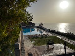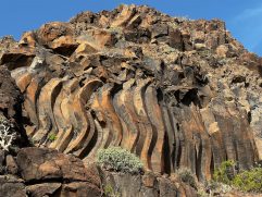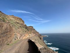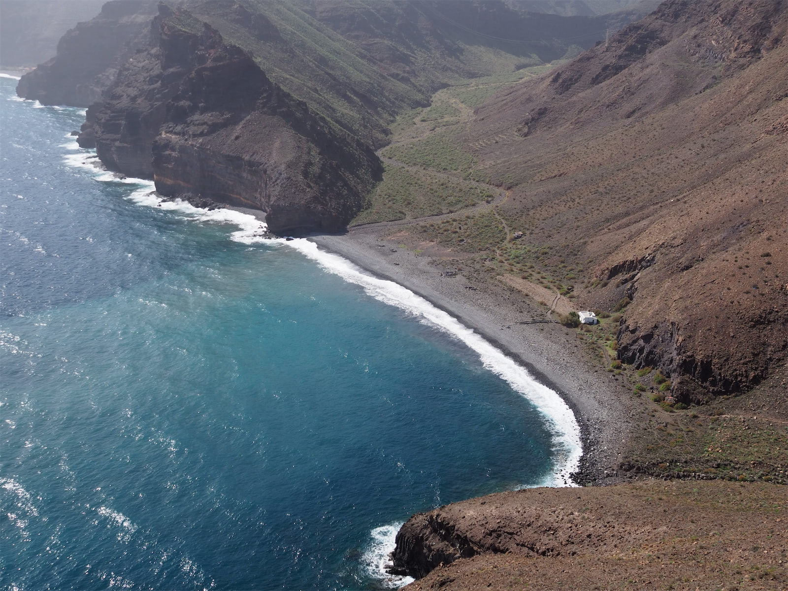 Die Nächte hier im Urlaub ähneln sich sehr stark und es ist auch egal, wo ich schlafe. Irgendwann zwischen 0:00 und 1:00 Uhr wache ich auf und es ist viel zu warm unter der Decke. Ohne Decke wird es dann aber wiederum sehr schnell kühl. Dann schlafe ich irgendwann wieder ein und wenn ich morgens aufwache, dann ist es einfach nur kühl. Egal ob mit oder ohne Decke. Ausgeschlafen bin ich aber dennoch. Um 8:30 Uhr sind wir wie gewohnt zum Frühstück gegangen. Hier im Parador de La Gomera ist es doch eher klassisch. Tee und Saft, Schinken und Käse, Toast und Brötchen, Obst und Joghurt, süßes Gebäck und Eier nach Wunsch. Wir hatten heute Omelette mit Schinken und Käse. Gegen 10 Uhr sind wir dann aufgebrochen. Eigentlich wollten wir das Auto heute mal stehen lassen und alles zu Fuß machen … haben wir zum Glück aber nicht gemacht. Alleine die Strecke zum Startpunkt der ersten Wanderung führte nur über Straßen und dazu auch auf und ab. Wäre zeitraubend und auch nicht schön zu laufen gewesen. Wir sind bis zum Ende der asphaltierten Straße gefahren und haben dort einfach am Rand geparkt. Die Strecke hinunter zur Ermita de Nuestra Señora de Guadalupe war zum Ende hin auch ziemlich steil. Hinzu kam, dass wir den Weg auch wieder zurück mussten und zu allem Überfluss war es heute auch recht heiß. Dennoch war es eine schöne erste Tour und uns sind sowohl oben, als auch unten am Meer tolle Aufnahmen gelungen. Zurück am Auto sind wir nach San Sebastian gefahren und haben direkt in der Stadt geparkt. Wir haben uns die Stadt angesehen und etwas getrunken. Dann ging es entlang der Bucht in den Süden der Stadt zur zweiten Wanderung des Tages. Die Tour hinauf nach Manchal und El Veredal ist wirklich toll, da man den Blick immer auf das Meer gerichtet hat. Man kann einen grandiosen Blick über die Stadt und den Hafen genießen und mit Glück auch Teneriffa und den Teide sehen. Wir hatten heute Glück und sind, genau wir vor neun Jahren, bis zum Aussichtspunkt Playa de La Guancha gewandert. Anschließend natürlich auch die ganze Strecke wieder zurück. Als wir wieder in der Stadt ankamen, hatten wir richtig Hunger. Das kleine Lokal, wo wir vormittags nur etwas getrunken hatten, hatte leider zu. Sind wir einfach ein Restaurant weiter gegangen. Dort gab es dann wieder einen dieser typischen Momente, die man eigentlich miterlebt haben muss. Ich versuche es trotzdem mal rüber zu bringen. Ich habe also alles wie gewohnt schön auf Spanisch bestellt. Der Wirt hat dann ebenfalls auf Spanisch alles wiederholt und genauestens erklärt. Daraufhin habe ich wieder auf Spanisch erklärt, was und wie ich es gerne hätte. Als wir uns dann endlich einig waren – si claro – hat er in perfektem Deutsch noch einmal gesagt, er wolle nur sicherstellen alle Kombinationen durchgegangen zu sein. Aber mich hat er erst einmal schön machen lassen. Das Essen war auf jeden Fall super lecker. Wir hatten als Vorspeise Almogrote, eine kanarische Spezialität, und dann gegrilltes Schweinefilet und Ziegenfleisch mit Papas Arrugadas und Mojo. Die Mojo Rojo war heute super scharf. Alles in allem sind wir sehr zufrieden wieder zum Auto gelaufen. Jetzt sind wir auf unserem Zimmer und haben uns frisch gemacht. Gerade haben wir das Bier aus der Minibar geöffnet und gehen gleich noch einmal raus. Vielleicht holen wir uns im Supermarkt noch ein Eis.