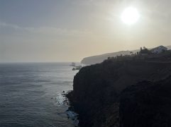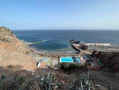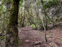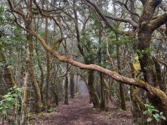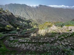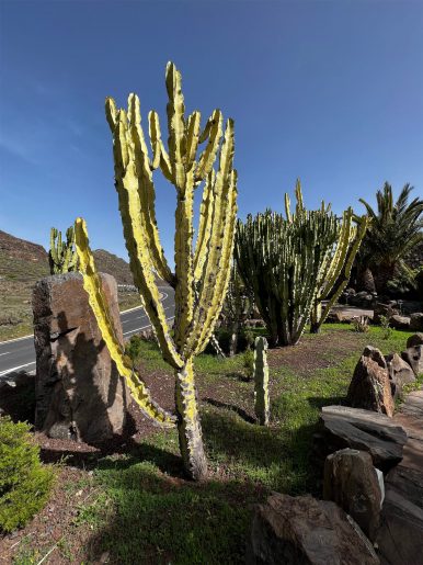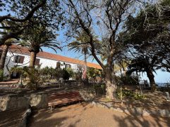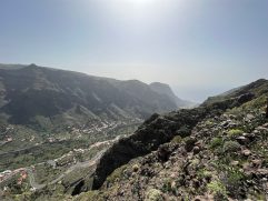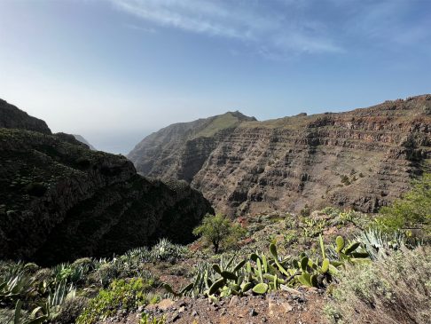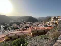 Irgendwie haben wir tatsächlich letzte Nacht fast 10 Stunden geschlafen. Es heißt ja, der Körper holt sich was er braucht. Wir haben unser letztes Frühstück in Hermigua noch einmal genossen. Vor allem, als die anderen Gäste endlich fertig waren. Dann kehrte nämlich Ruhe ein. Im Anschluss haben wir alles gepackt und haben den Norden verlassen. Als erstes wollten wir nach El Pescante, aber wegen Filmarbeiten war ein großer Abschnitt des Strands gesperrt. Also sind wir gleich weiter über Agulo und Vallehermoso zum Nebelwald. Wir sind ein kleines Stück über die GM-2 in den Nationalpark gefahren und haben dann am ausgewiesenen Parkplatz bei dichtem Nebel die kleine Runde gestartet. Es war so beeindruckend. Die Formen der Bäume, das ganze Moos und dann der Nebel. Richtig tolle und teils unheimliche Atmosphäre. Dann sind wir zurück zur GM-1 und die Strecke hinunter durch das Valle Gran Rey gefahren. Nach 13-14 °C im Nebelwald, haben wir bei 27 °C das Auto in La Calera geparkt. Deutlich touristischer und auch um diese Zeit schon überlaufen. Nach einer kleinen Runde haben wir uns in eine Bar gesetzt und hatten endlich die lang ersehnten Papas Arrugadas mit Mojo – lecker! Von dort aus ging es dann, zumeist über Nebenstraßen, immer weiter bis San Sebastian. Nach vielen weiteren tollen Stopps sind wir um kurz vor 16 Uhr im Parador de La Gomera angekommen und haben unser Zimmer 220 für die nächsten drei Tage bezogen. Richtig schön eingerichtet, spanischer Kolonialstil (wenn es den denn gibt) und sogar vom Balkon aus Blick auf das Meer. Dazu ein sehr schön angelegter Garten mit dem perfekten Blick über San Sebastian de La Gomera. Wir sind auch noch einmal ein Stück gelaufen und haben uns den Faro angesehen. Auf dem Rückweg waren wir noch schnell im Supermarkt Wasser für die nächsten Tage kaufen. Zum Abendessen hatten wir uns direkt einen Tisch im Restaurant hier im Hotel reserviert. Sollte eine Art Probedurchlauf für Mittwoch werden. Wir wurden nicht enttäuscht. Super Service und richtig gutes Essen. Steffi hatte gegrillte Lammhaxe und ich Iberico Schwein. Dazu eine Flasche Weißwein. Wir sind glücklich und zufrieden ins Bett gefallen.