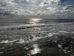 Das erste Treffen gestern verlief ganz entspannt. Wir waren 18 Personen, wobei zwei weitere noch zwischen Emden und Borkum festhingen. Am Ende ist eine 29er Gruppe doch überraschend groß. Nach der Kennenlern- und Einführungsrunde sind wir noch gemeinsam zum Abendessen in den Upholmhof gegangen. Essen war sehr gut und es war ein lustiger und angenehmer erster Abend. Beim Frühstück saßen wir dann alle zusammen, allerdings verteilt auf mehrere Tische. Der erste Tagespunkt war dann heute die Übernahme der Fahrräder und nachdem alle das richtige Equipment hatten, ging es ins Inselmuseum. Da es Montags für normale Gäste geschlossen hat, hatten wir es ganz für uns alleine und konnten eine gute Führung genießen. Nach dem Besuch im Museum wurde das Wetter auch schon deutlich besser und Steffi und ich sind während der Mittagspause ein Stück über die Insel gefahren und hatten frischen Fisch zum Mittag. Anschließend ging es zurück zum Hotel, wo wir die Fahrräder abgestellt haben und dann gemeinsam zur Stadtführung aufgebrochen sind. Die war richtig gut und hatte viele spannende Geschichten über Borkum und deren Einwohner. Eben weil es so spannend gewesen ist, waren wir auch eine halbe Stunde später als geplant wieder am Hotel. Nach Feierabend sind Steffi und ich erst einmal Eis essen gegangen und haben dann viel Zeit am Strand verbracht. Heute stand die Makrofotografie bei uns auf dem Programm. Da wir nicht mehr essen wollten bzw. brauchten, haben wir uns nur etwas wärmer angezogen und sind dann wieder an die Strandpromenade. Zum Sundowner gab es richtig leckeres Bier und den perfekten Blick über die Sandbänke Richtung Westen. Super Ausklang für diesen Tag.